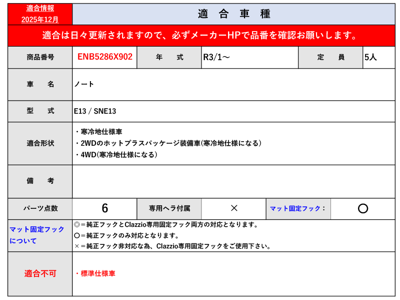 [クラッツィオ]E13,SNE13 ノート_寒冷地仕様車(R3/1~)用ふかふかフロアマット(ラゲッジ無)[ENB5286X902] 收藏