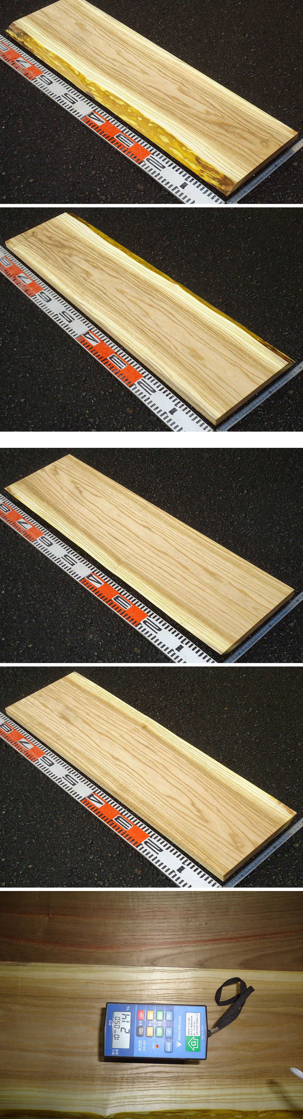 ・平面加工後、三面自動カンナ仕上げしてあり、取り扱い易く状態も見易くなっております。逆目がある場合もあります。