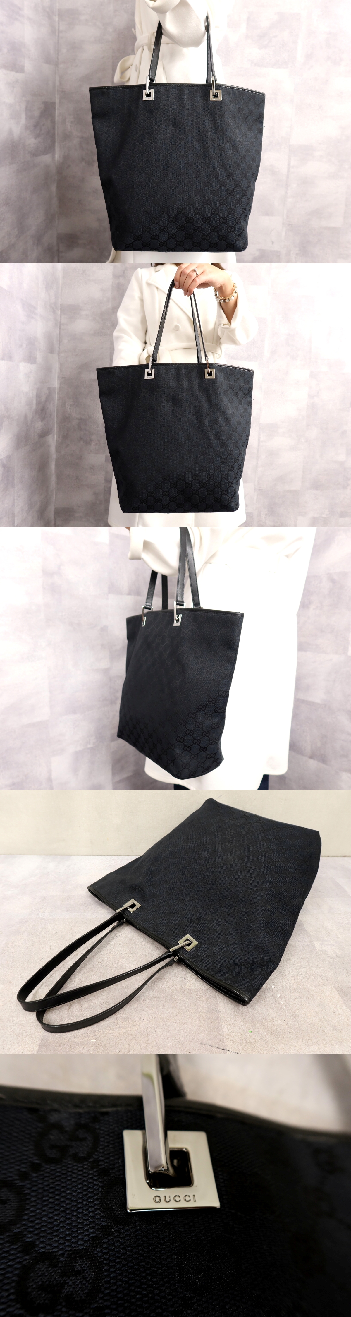 ●超美品●GUCCI グッチ●GGキャンバス カーフ レザー 本革●トート バッグ●黒●シルバー金具●腕掛け●イタリア製●A4 かばん●Js63659 收藏