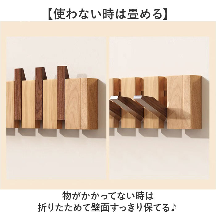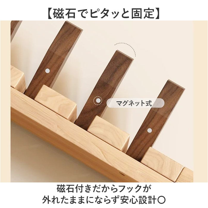 | 商品説明 | ・・【壁面収納を賢く活用】 ・帽子もコートもスッキリ掛けられる「ウォールハンガー8連」。 ・【8連で収納力抜群】 ・帽子やコート、バッグまで一度にたっぷり掛けられる◎ ・【使わない時は畳める】 ・物がかかってない時は折りたためて壁面すっきり保てる♪ ・【磁石でピタッと固定】 ・磁石付きだからフックが外れたままにならず安心設計〇 ・【壁に合わせて取り付け】 ・ピンとネジどちらも付属で壁の種類を選ばず設置可能! ・【天然木の温もり】 ・ナチュラルな木製素材で壁面をおしゃれに演出できる。 |