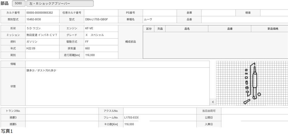 H22年 L175S ムーヴ 左 リアショックアブソーバー バネ付 /送料 SS/905302 收藏