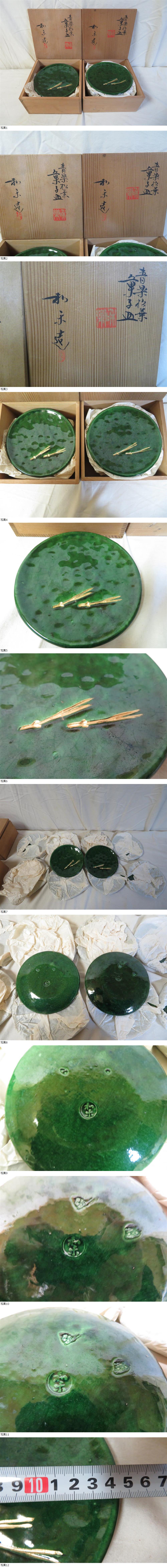川崎和楽 青楽松葉 菓子皿 金彩 真作 5客揃/2点 銘々皿 五寸皿 茶道具 菓子器 懐石料理 未使用 收藏
