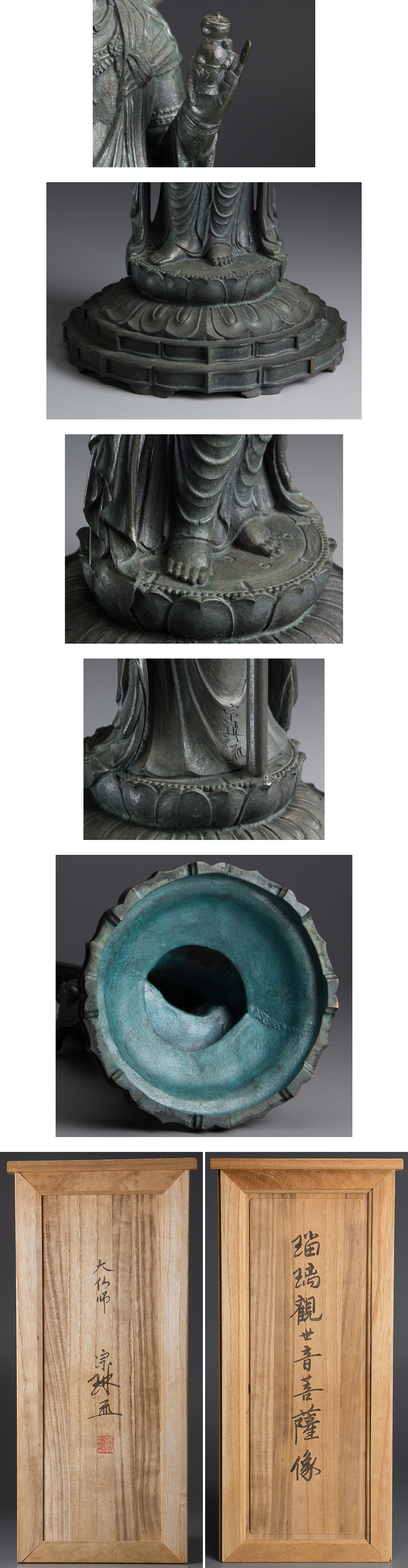 【五】大佛師 松久宗琳 作 『瑠璃観世音菩薩像』 ブロンズ 高44.5cm 共箱 收藏