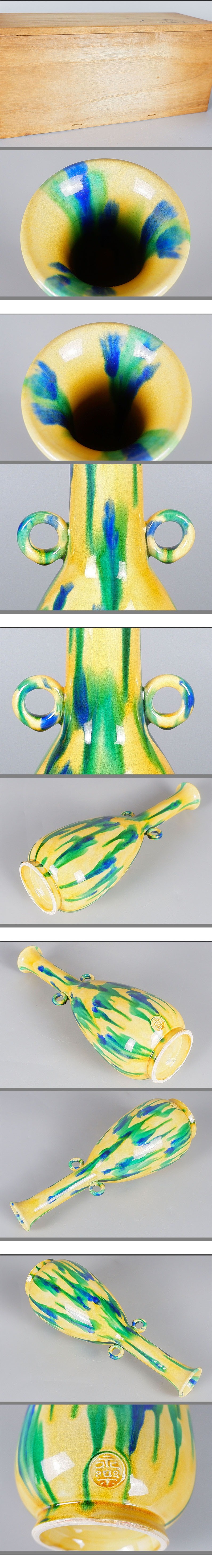 【MKA】千家十職 永楽即全 三彩耳付花入 共箱 16代善五郎 京都 茶道具 真作保証 收藏