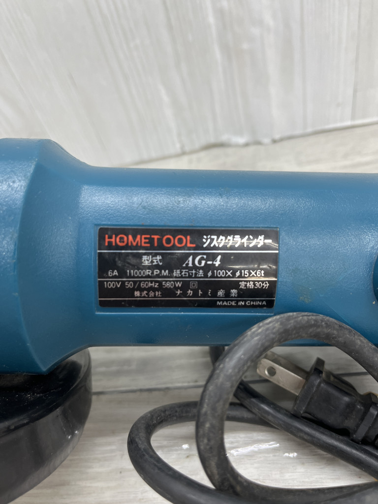 ◆1円スタート・通電のみ確認◆ ナカトミ産業 HOMETOOL ディスクグラインダー AG-4 現状品 OG225503 收藏