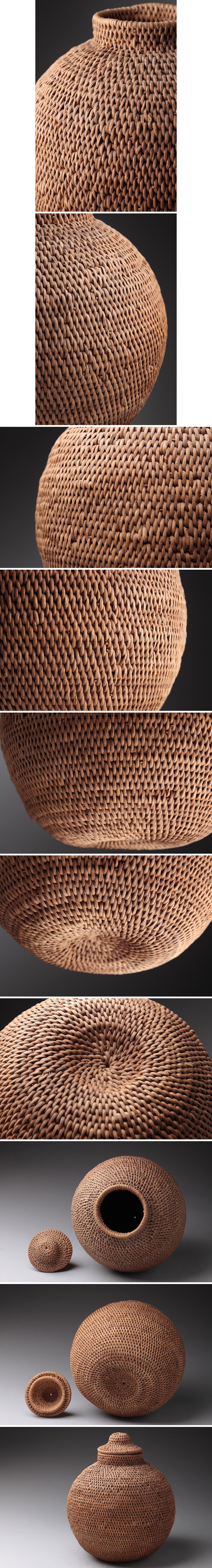 | ◆ 時代 籐細工 古籐編 蓋物 高23cm・籐編蓋付バスケット・籐編み籠・収納籠・籐編盖盒 古美術 ◆