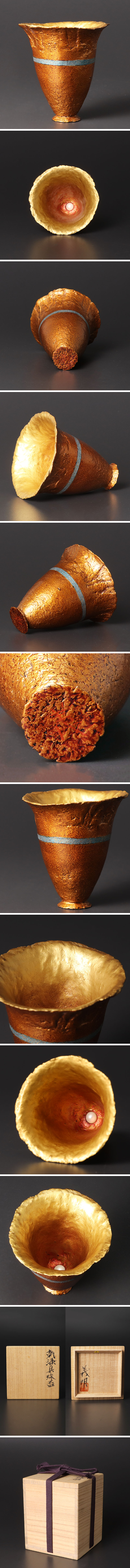 波のような口縁と埋め込まれた真珠の美しく可憐な作品です。 ★商品は田口義明の作品である事を保証致します。 |