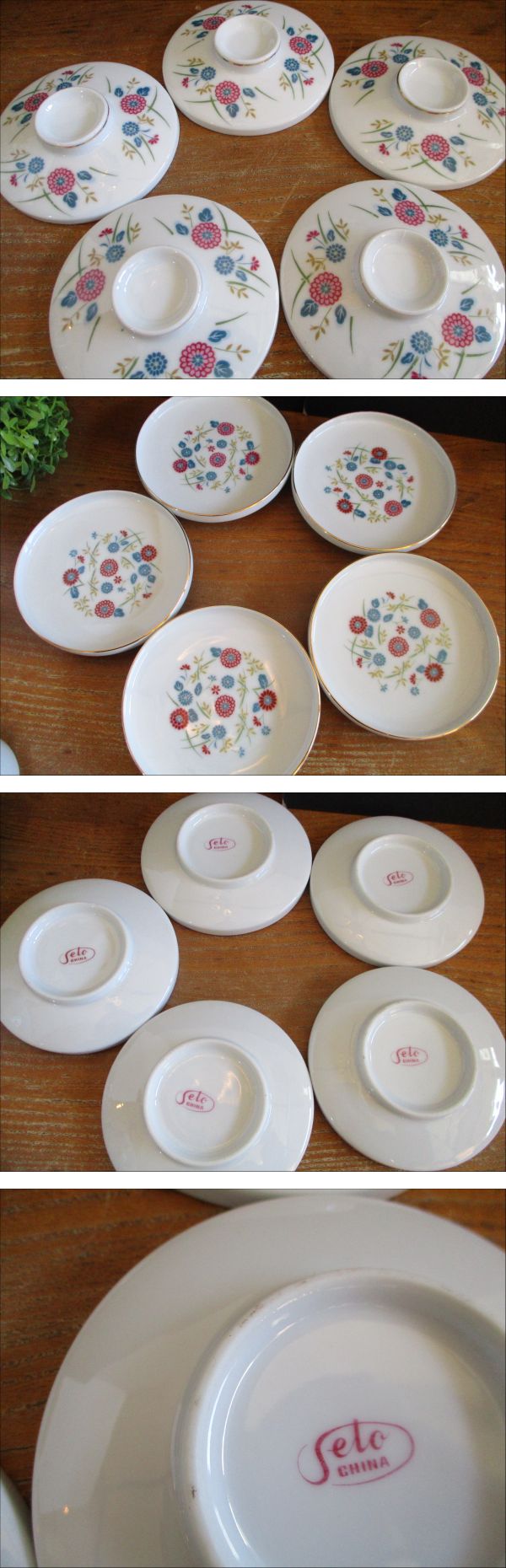 【昭和レトロ・レア・希少】Seto china 蒸し碗 5客セット 茶碗蒸し容器 陶器 蓋・受皿付き 花柄 瀬戸 和食器 茶わん蒸し セト 入手困難 | |||
