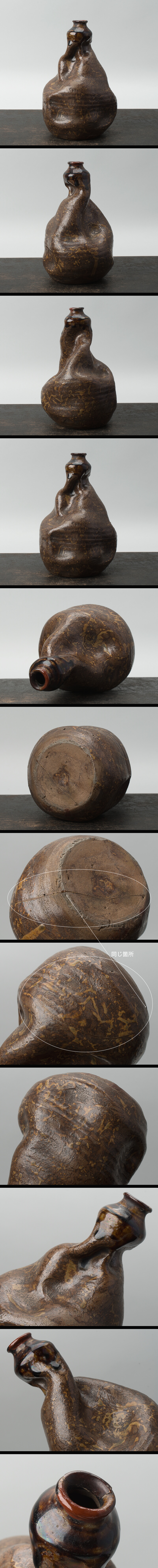 | 志戸呂焼の徳利。江戸時代。箱無。 サイズは、幅約10-10.5cm、高さ約16cm。 くちに直しがあります。 底から胴の下部にかけてヒビの直しがあります。 状態、詳細は画像でご確認ください。 |