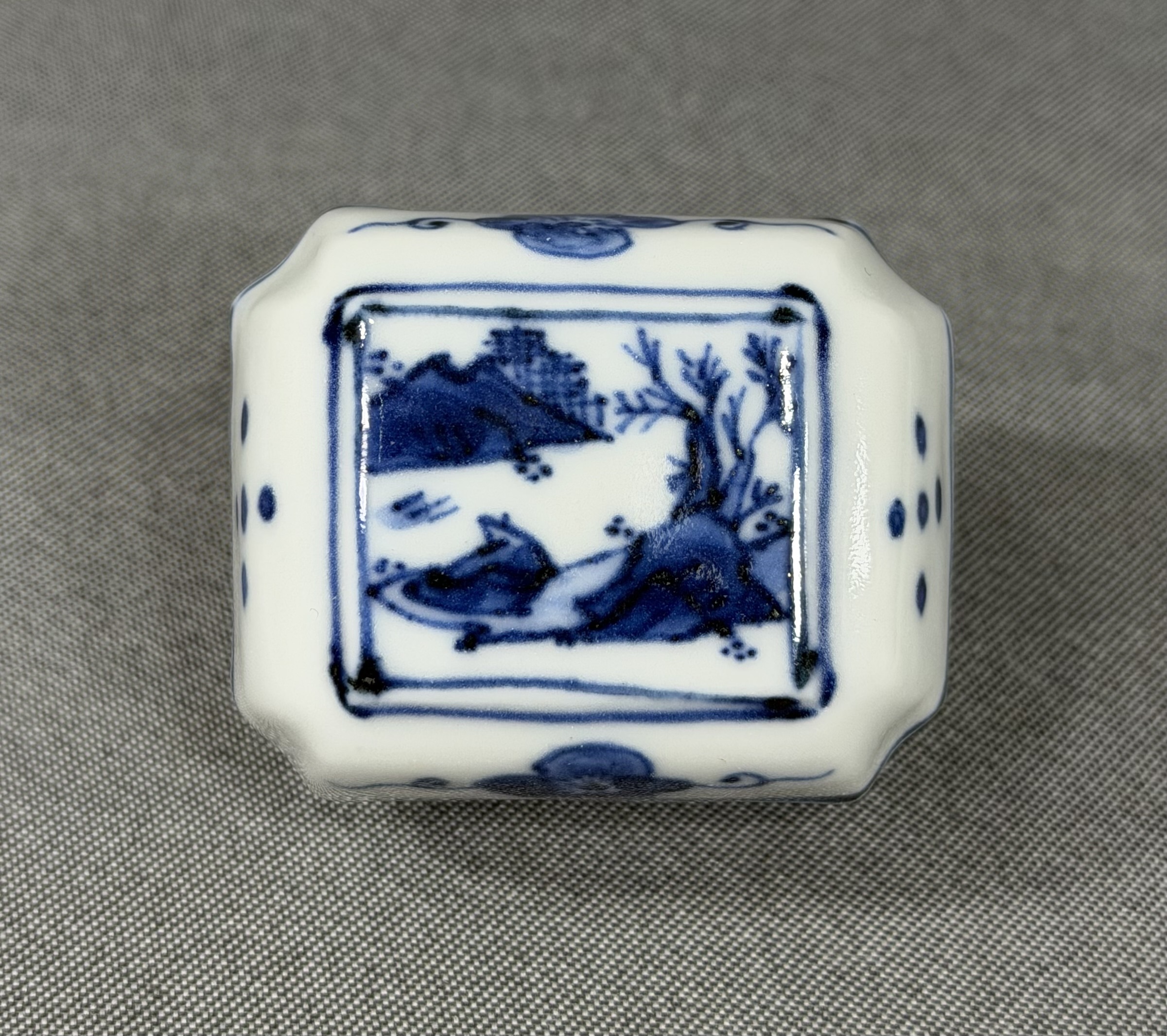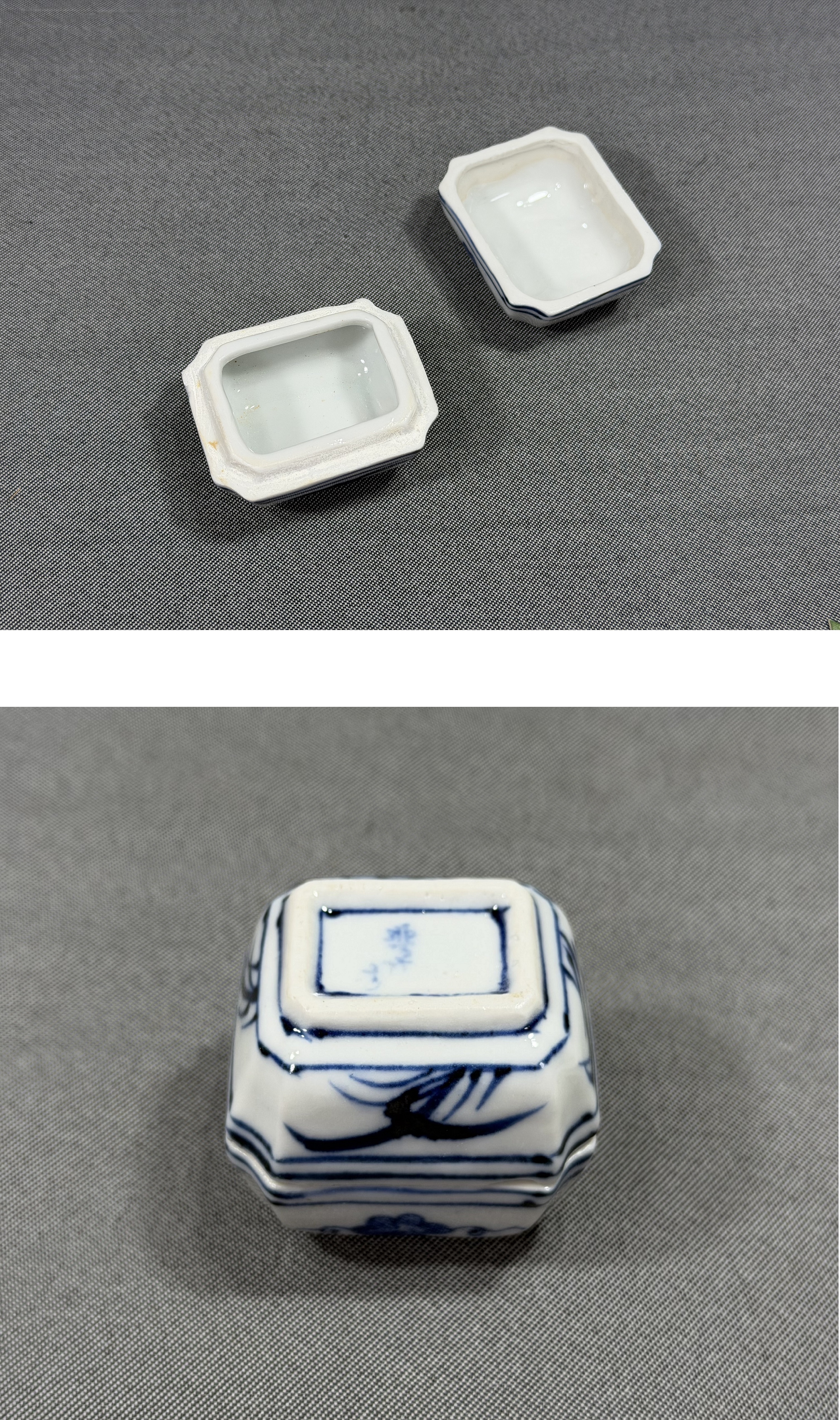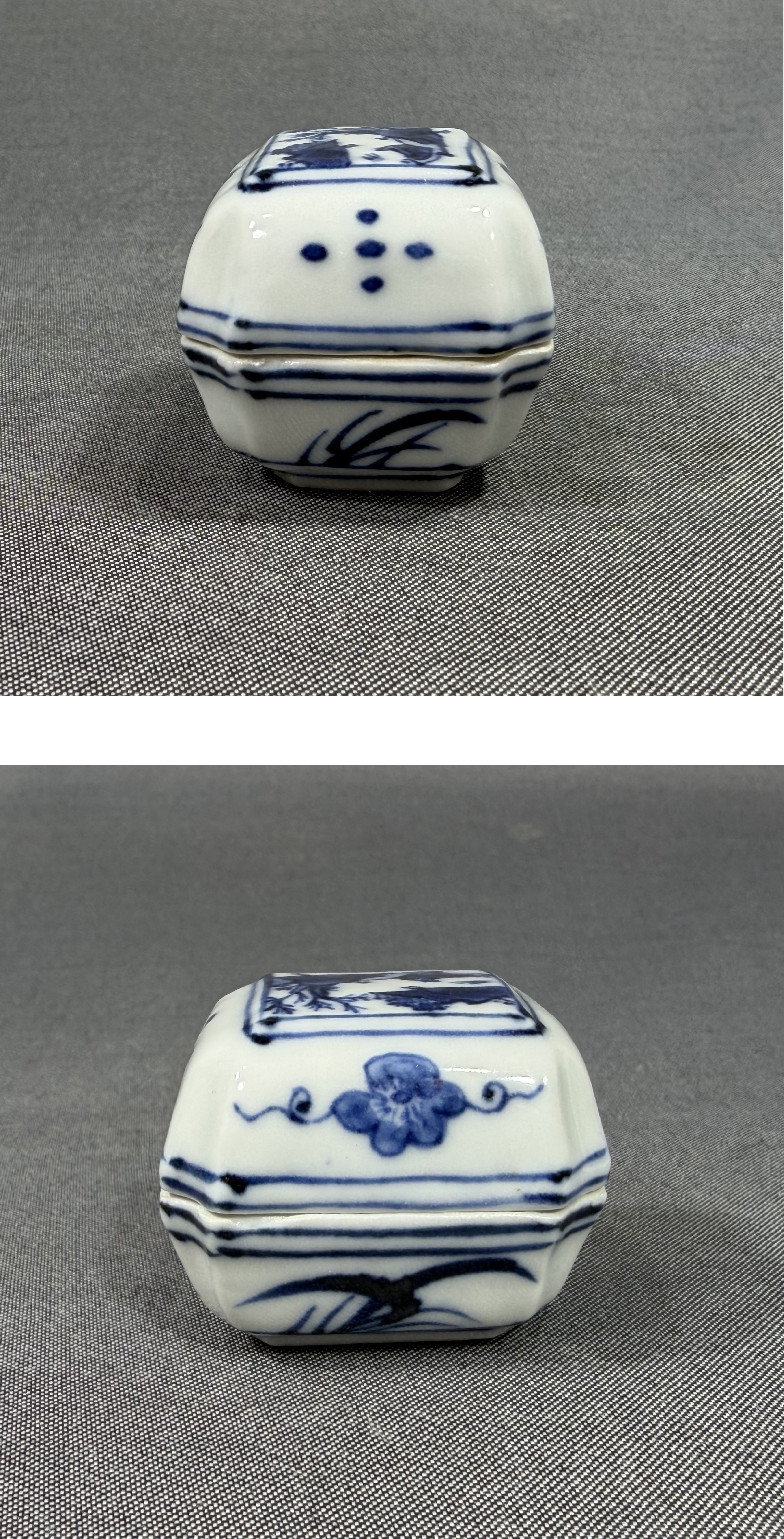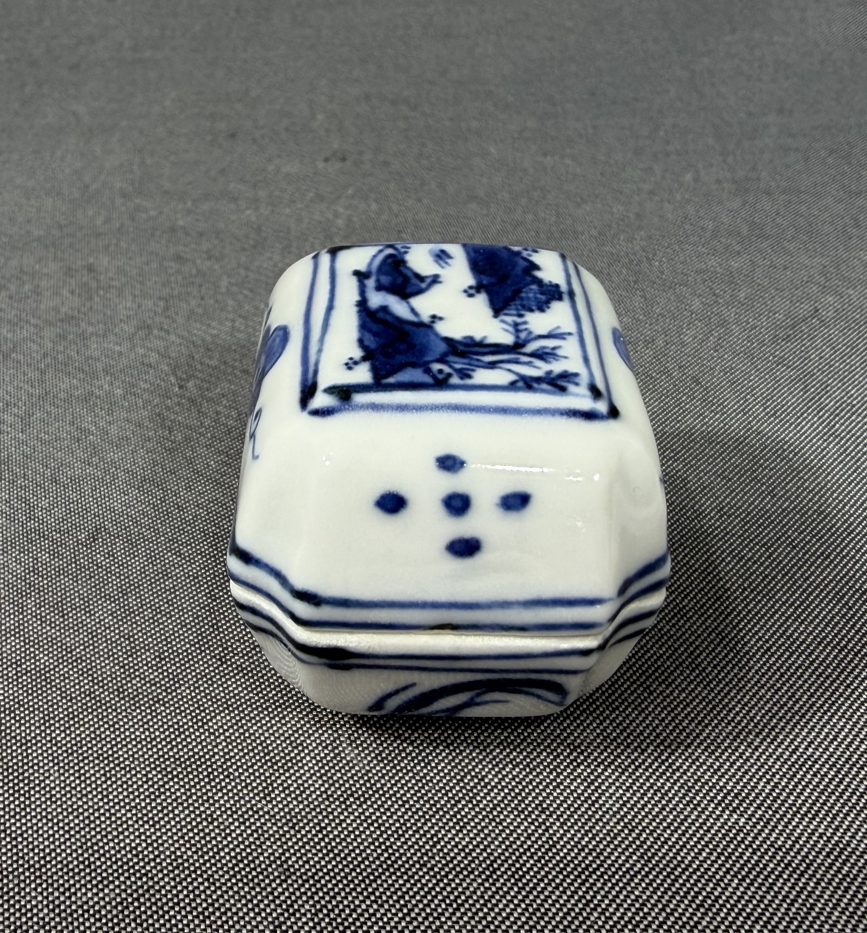 【風車】京焼名工 平安 【高野昭阿弥】作 染付 山水 蘭絵 葛籠 香合 ▲共箱 在銘▲茶道具 骨董品 古美術 收藏