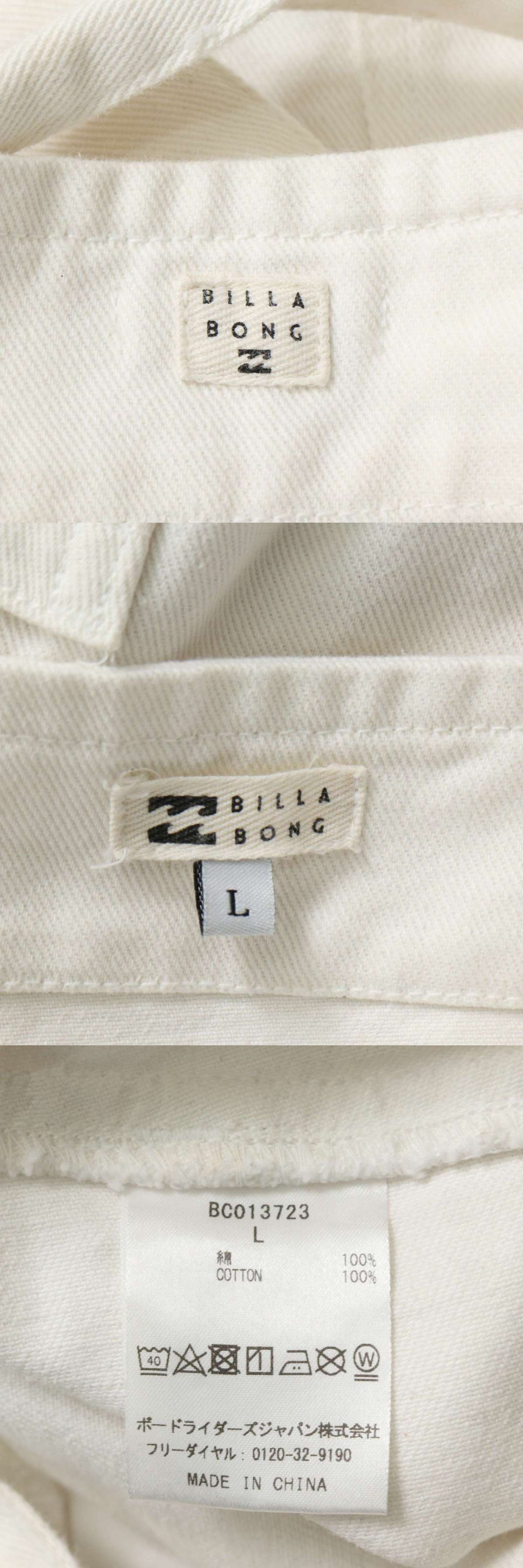 BILLABONG ビラボン 通年 ロゴ刺繍★ ホワイト デニム オーバーオール パンツ Sz.L メンズ 白 收藏