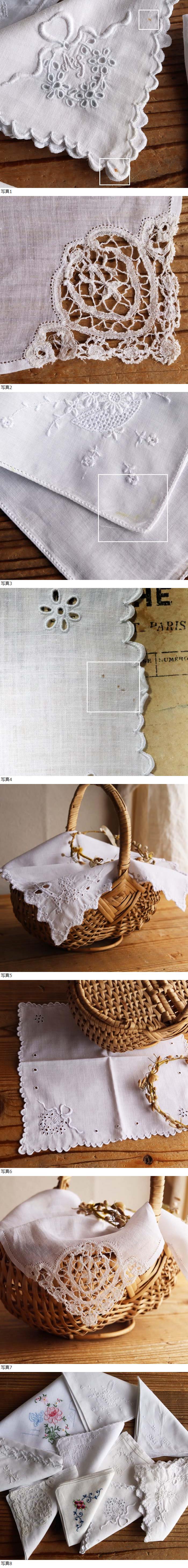 【203】たくさん 10枚!フランス アンティーク ヴィンテージ ハンカチ レース 刺繍 白 フレンチ シャビー ハンドメイド リメイク 素材 收藏
