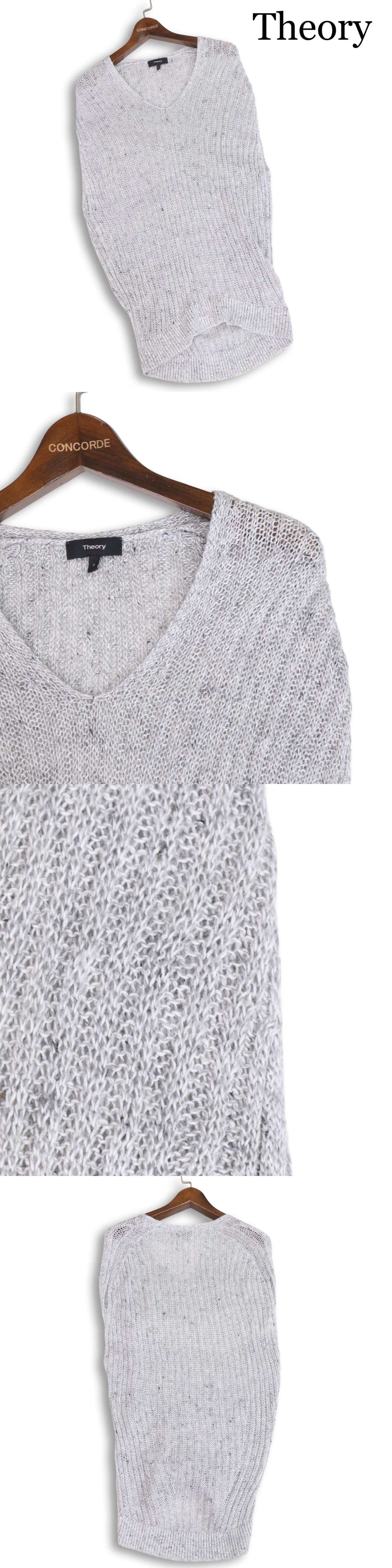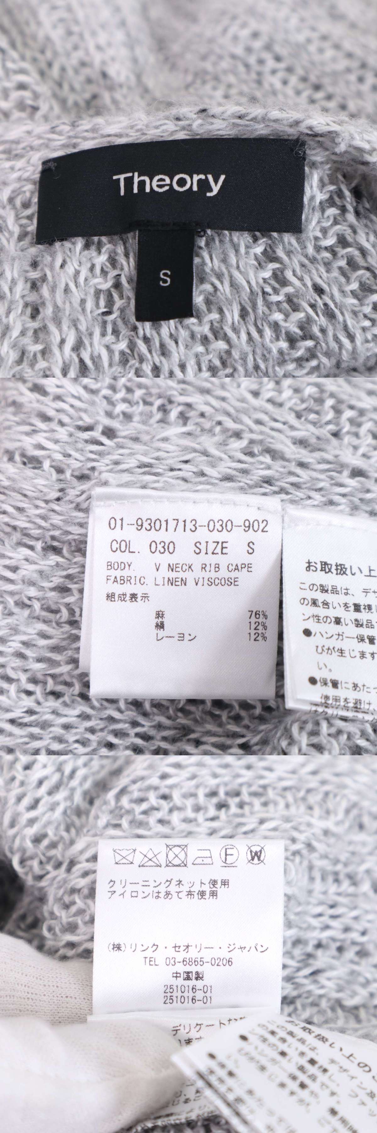 Theory セオリー 【V NECK RIB CAPE】春夏★ リネン シルク ノースリーブ ロング ニット セーター Sz.S レディース 灰 收藏