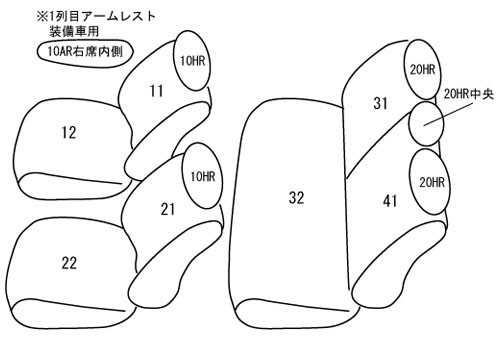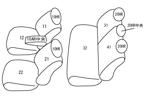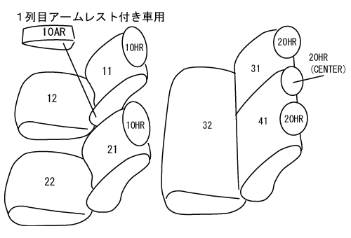 | 適合形状 | フロントヘッドレスト上下調整式、2列目背もたれ6:4分割 ※オプションでシートヒーターやサイドエアバッグを装備されている場合でも装着可能です。 ※運転席側面アームレスト装備車は、背もたれカバーにアームレスト用の穴開け加工が必要です。 ※コンビニフック(買い物フック)が1列目・2列目のシートバック(背面)に装備されています。 こちらを使用するにはカバーに穴開け加工が必要です。 | ||