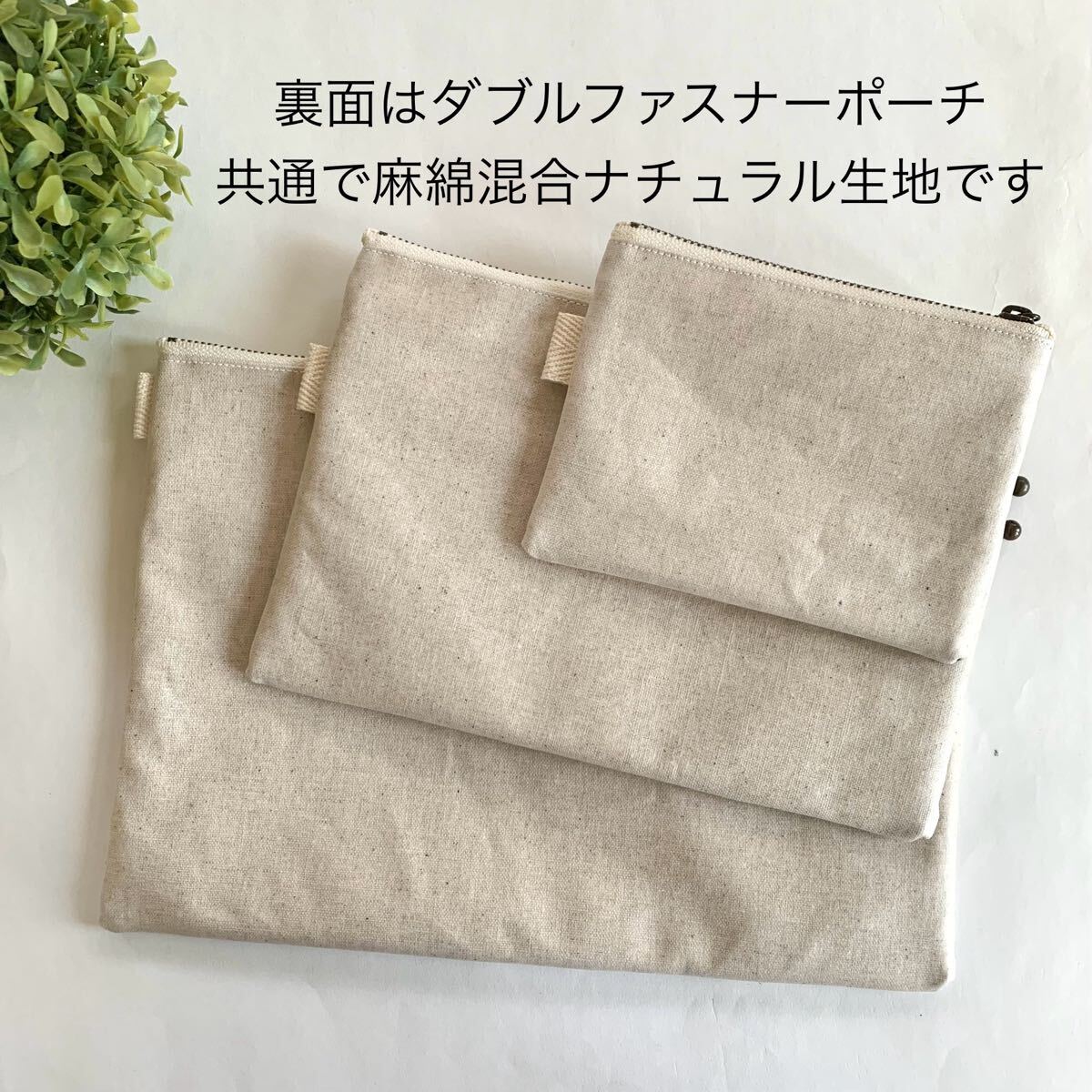 予防接種手帳や母子手帳やお薬手帳などをまとめて入れれるダブルファスナーポーチです。