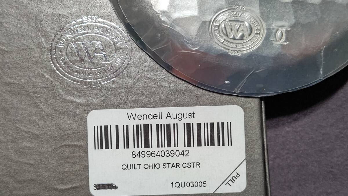 米国製 ハンドメイド メタルプレート(11.2㎝61g)WENDELL AUGUST 飾り皿 プレート オハイオ・スター(キルト)模様 シャネルロゴ 箱入り 收藏