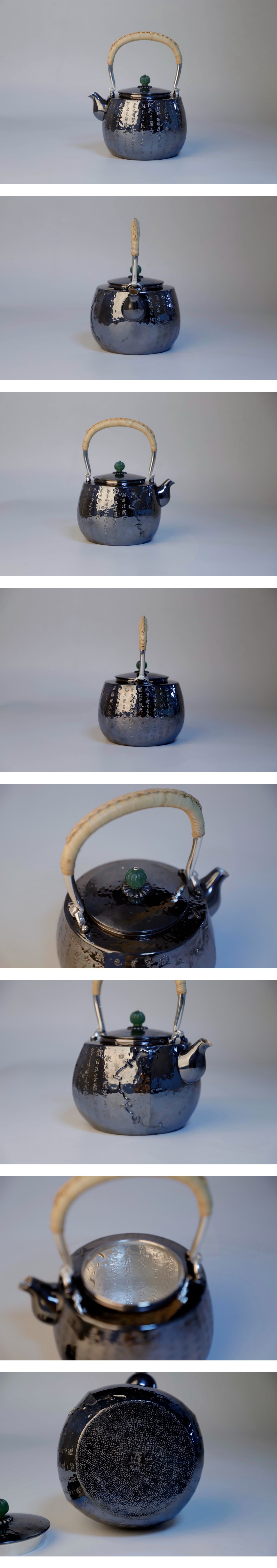 時代 純銀製 北村静香造 般若心経文彫 玉摘 湯沸 工芸品 古美術品 銀瓶 煎茶道具 重715g 收藏