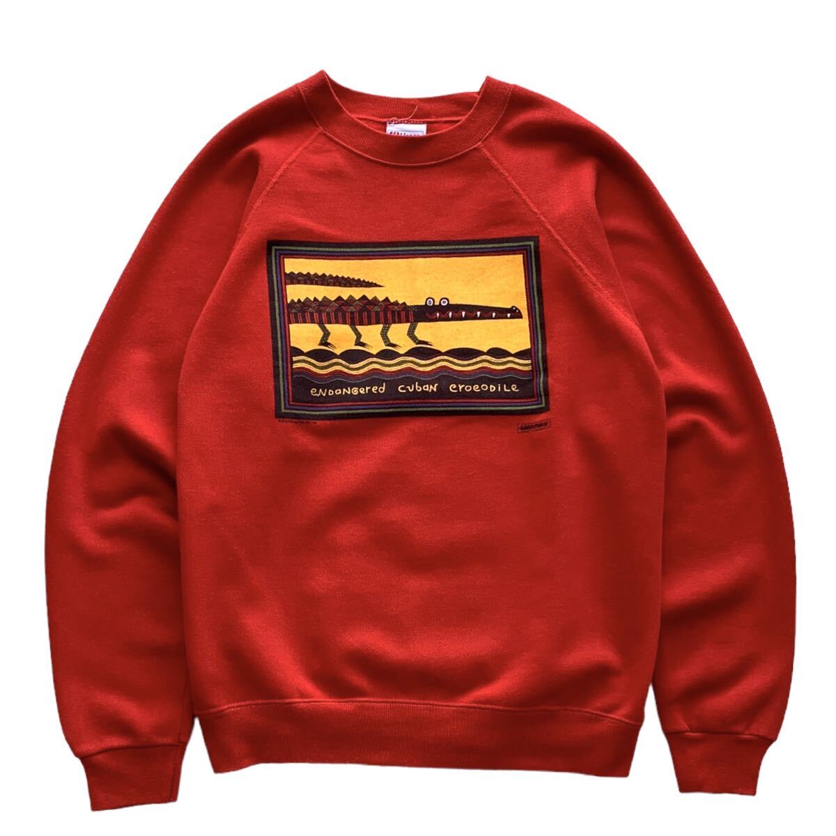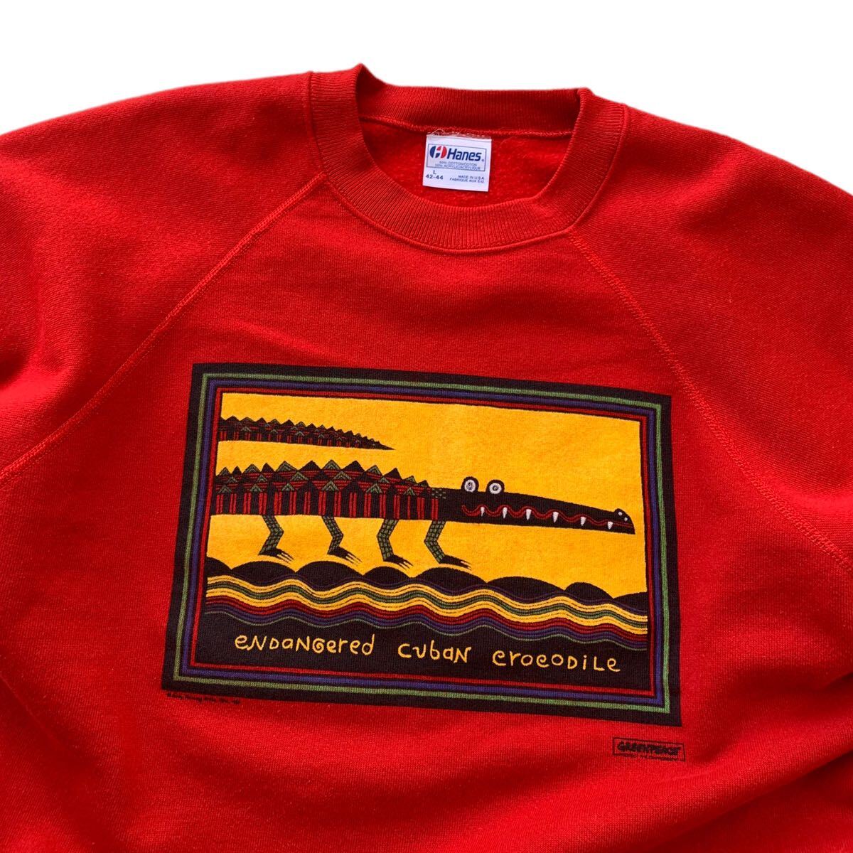 80s USA製 Hanes Judy Kensley McKi アート プリント スウェット L ワニ アニマル ヴィンテージ ヘインズ モダン 收藏
