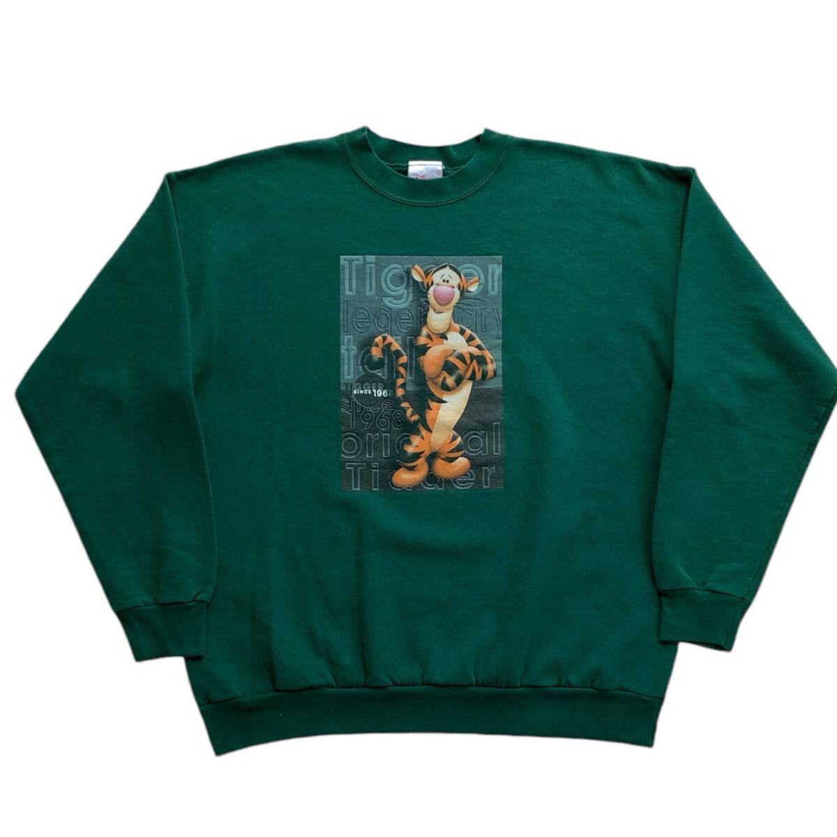 90s Disney store Tigger スウェット L グリーン ビンテージ オールド ディズニー Pooh くまのプーさん ティガー プリント 古着
