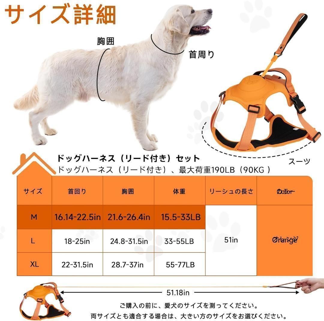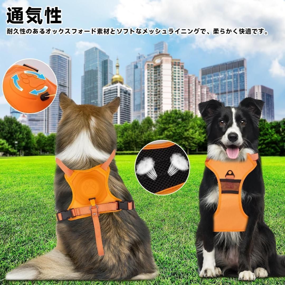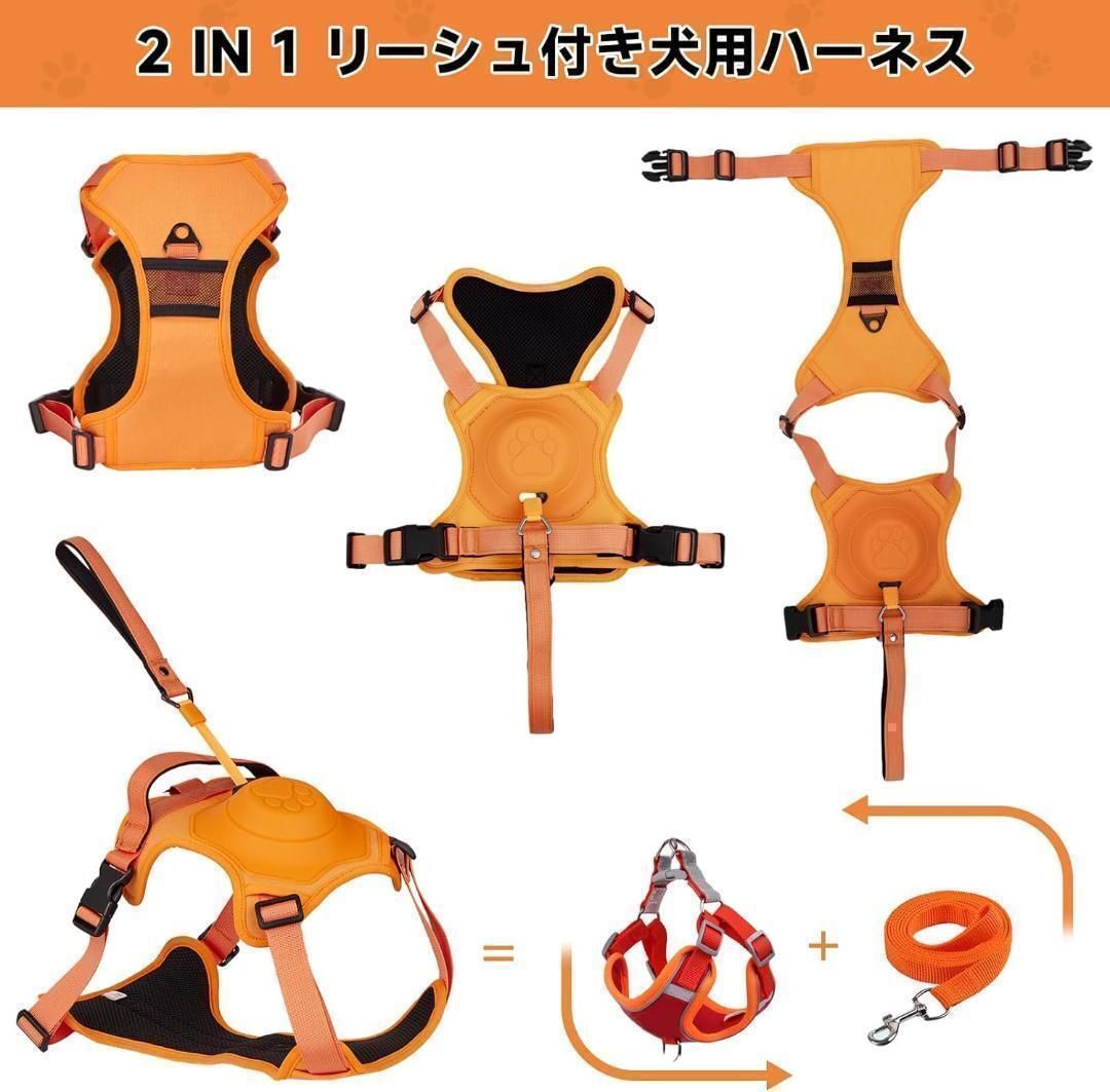 E044 犬用ハーネス 首輪 7-35KG 引っ張り防止 調整可能 オレンジ M 收藏
