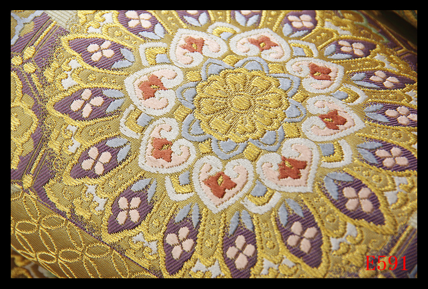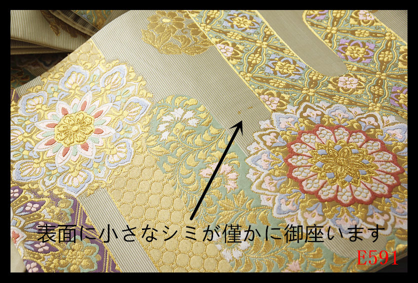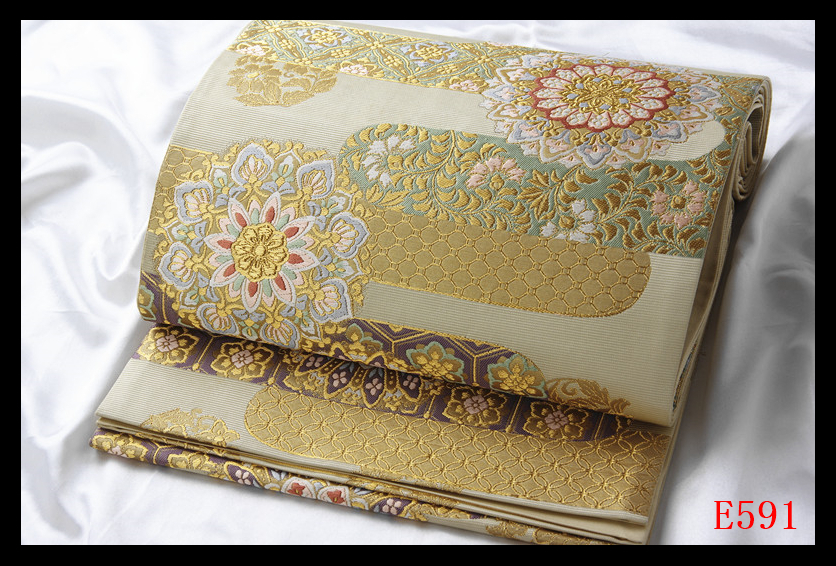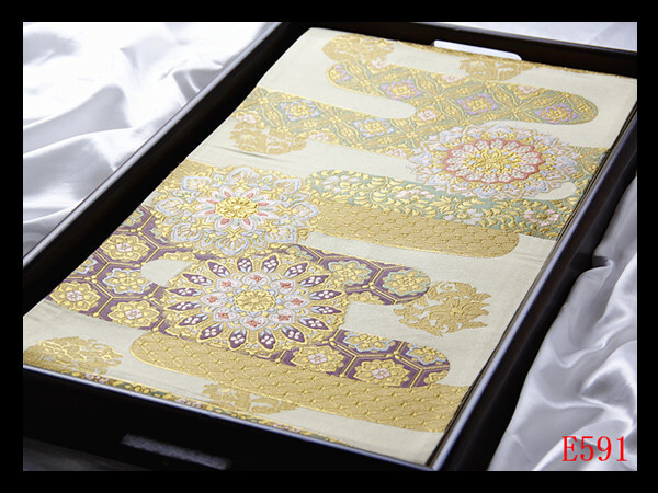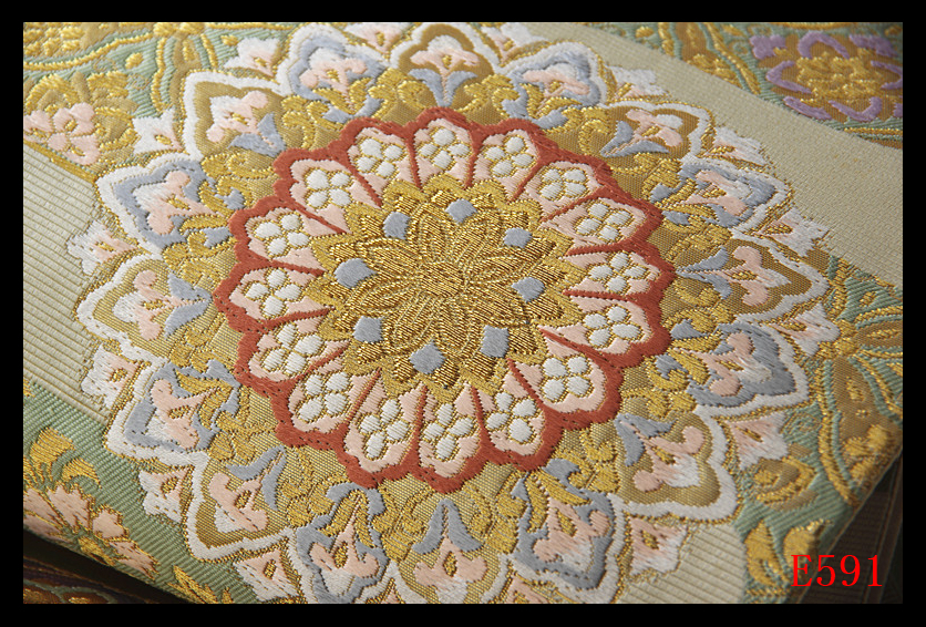 【E591】厳選西陣 手織り 振袖可 ヱ霞宝相華文様 ベージュ色地 六通高級正絹純金糸美術袋帯 ◇検簪着物名古屋帯帯締め 收藏