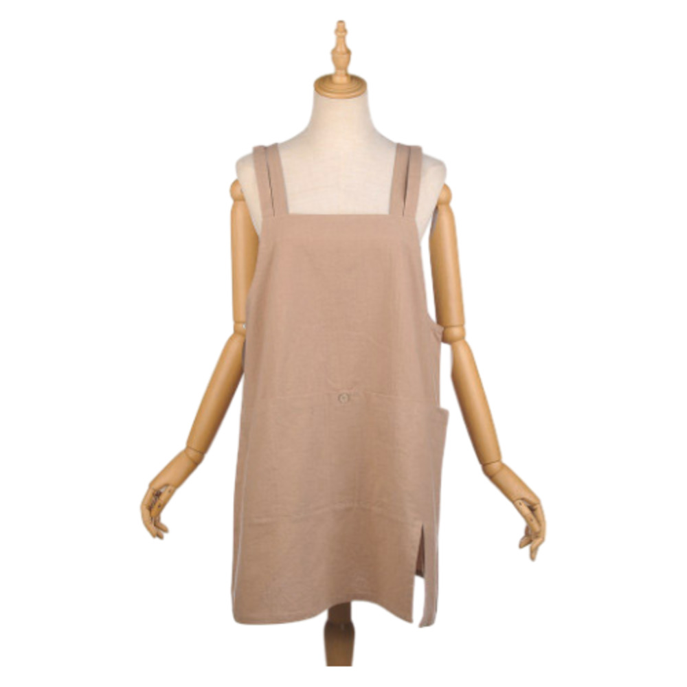 ☆ ライトブラウン ☆ シーチングワッシャー 釦あきエプロン エプロン おしゃれ 釦あきエプロン レディース女性 着脱が簡単 後ろボタン 收藏