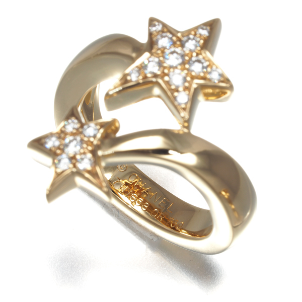 シャネル リング ダイヤ ダイヤモンド コメット スター 10号 K18YG 保証書 指輪 BLJ 收藏