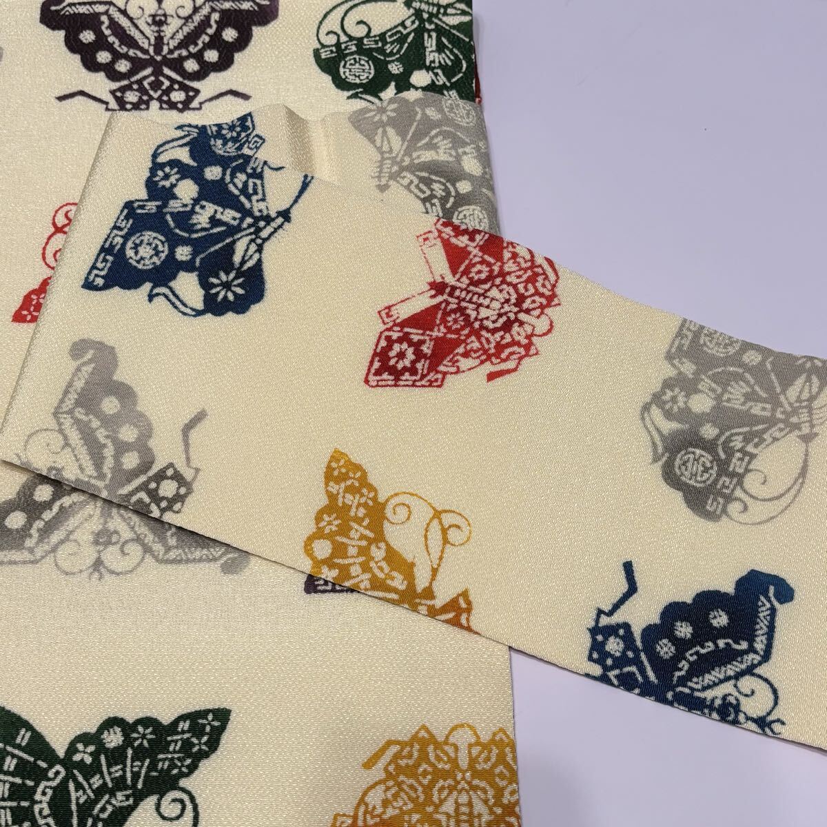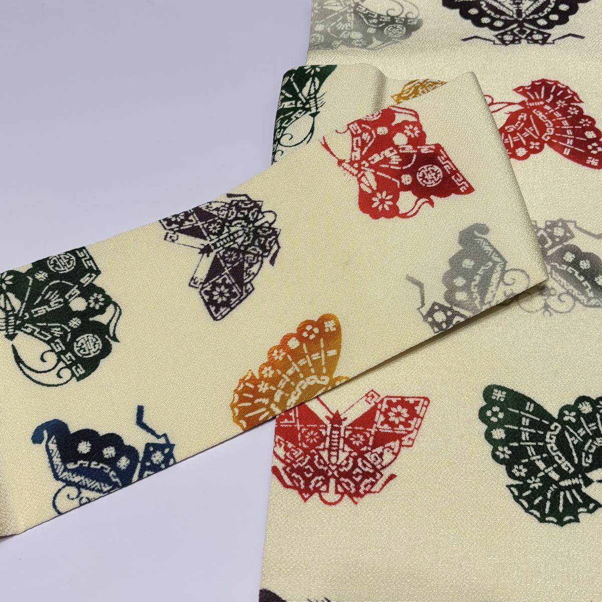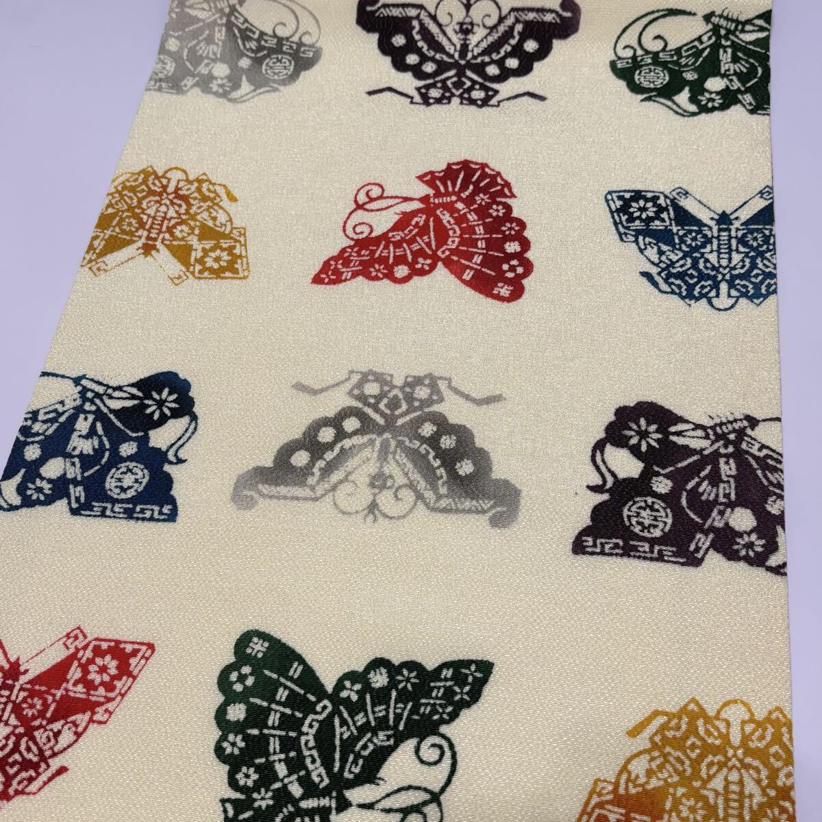 名古屋帯 型絵染め 正絹 縮緬 九寸 蝶 so020 收藏