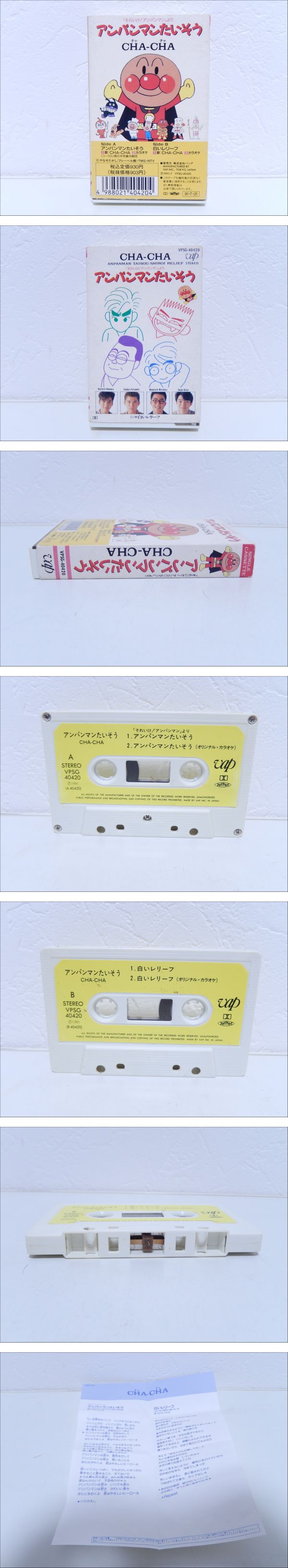 【管SH0751】1000円~ 昭和レトロ アンパンマン CHA-CHA アンパンマンたいそう カセットテープ 歌詞カード付き | ||