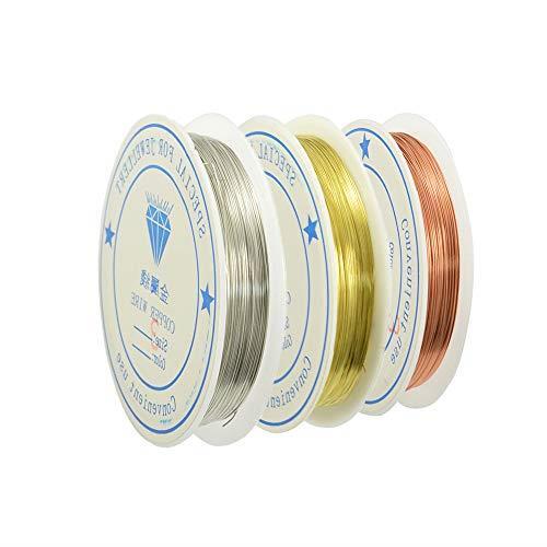 YFFSFDC 銅線 線径0.5mm アクセサリーワイヤー 3巻入 クラフトゴールド/シルバー/ワ柏F アートワイヤー アクセサリーパーツ DIY 手作り 手 收藏