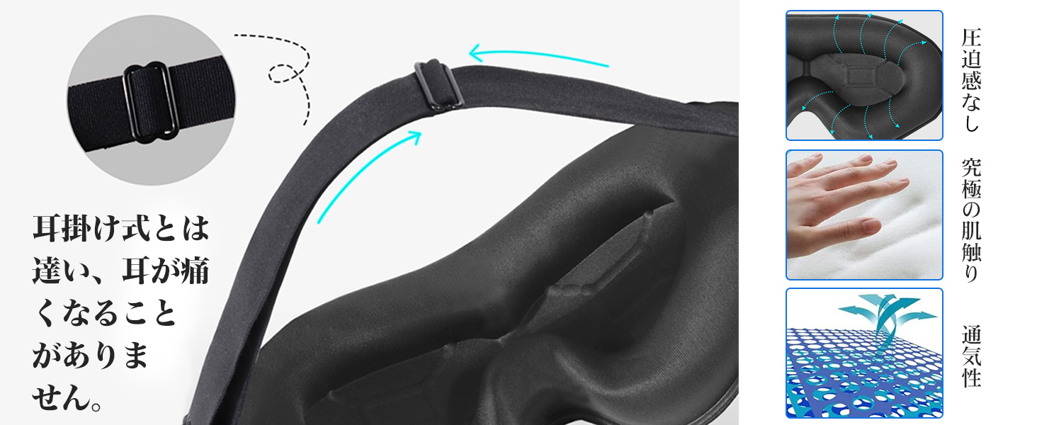 定価2480円 QEIKI 3D立体型アイマスク 【圧迫感ゼロ+簡単サイズ調整】【シルク製 高密度低反発形状記憶素材+冷感素材】ノーズブリッジ 收藏