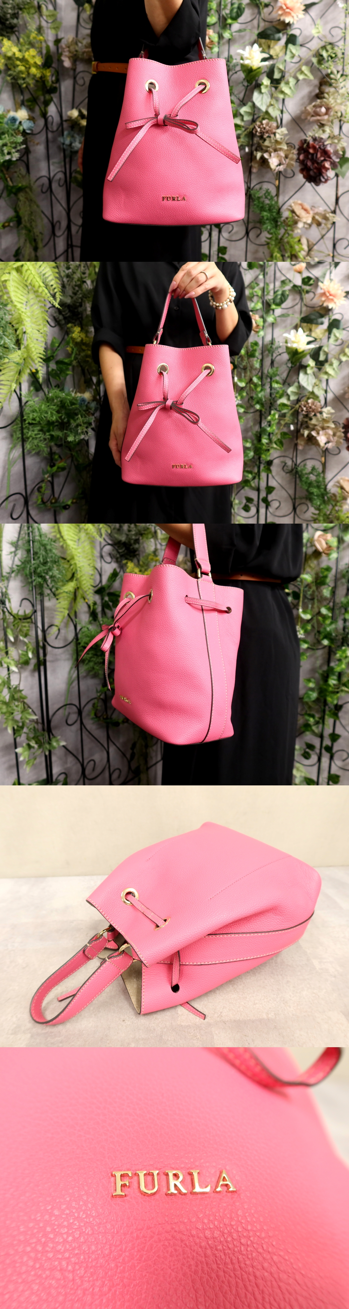 ●超美品●FURLA フルラ●コスタンザ●ロゴ金具●カーフ レザー 本革●ハンド バッグ●ピンク●ゴールド金具●B5 収納 かばん●Js61032 收藏