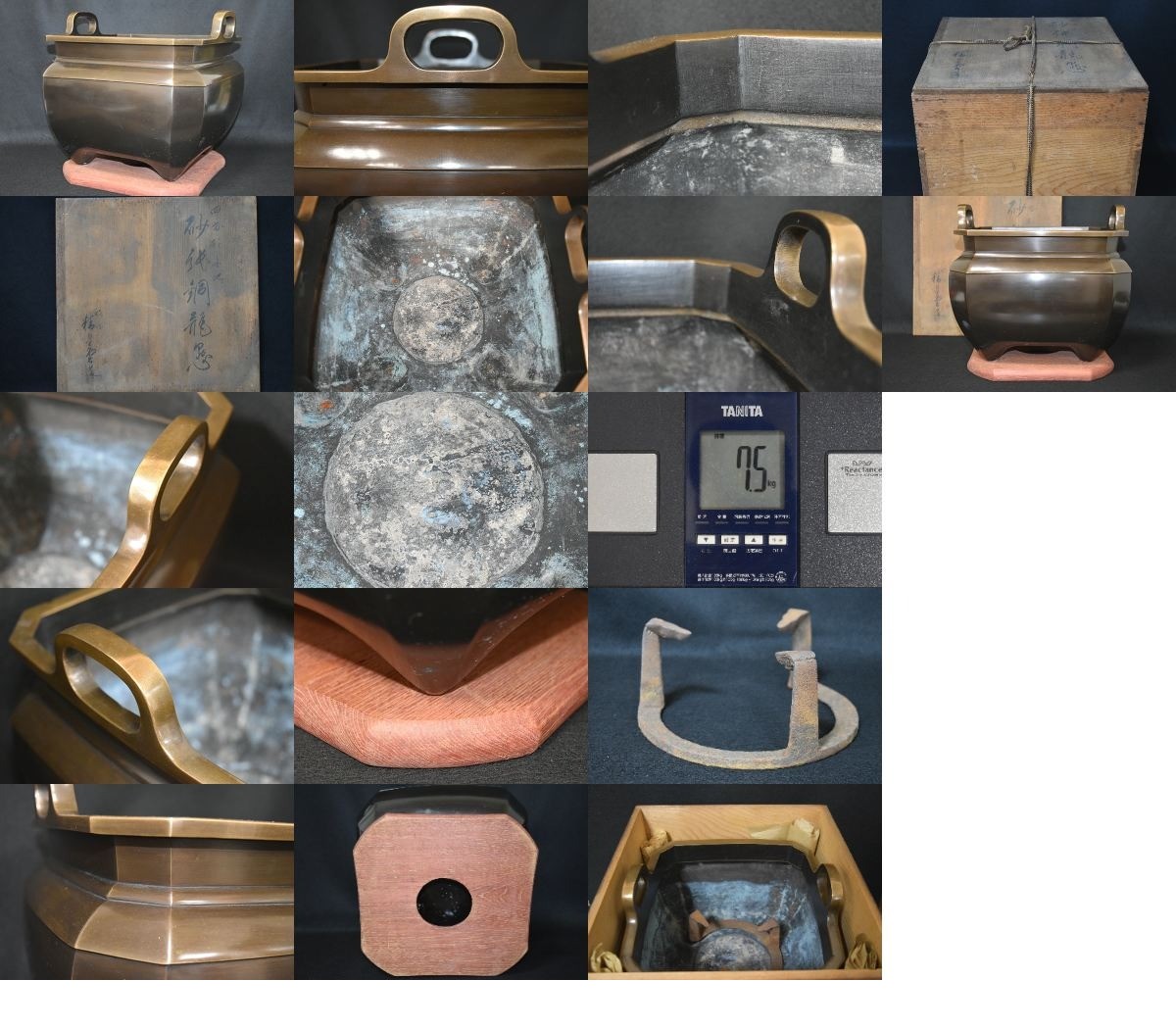 【光成】精金堂造「砂純銅・四方形・瓶掛」共箱・肌美品・無傷・7.5kg