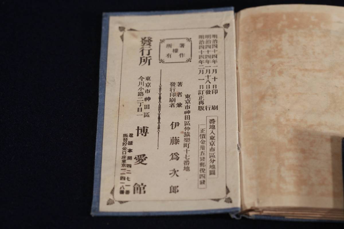 【猫拳】〔妙齢?レトログッズコレクター放出50 東京市区分地図 明治44年 博愛館 良好 【百円売切】〕 收藏