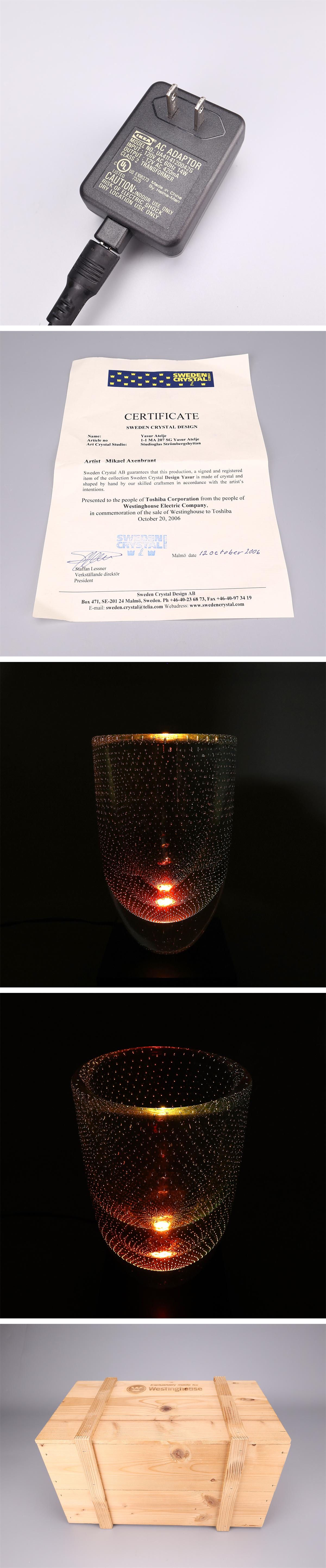 【吉】PC598 工芸ガラス 【スウェーデン クリスタルガラス】 STUDIIOGLAAS テーブルランプ 夜灯/共箱付 美品N! 收藏