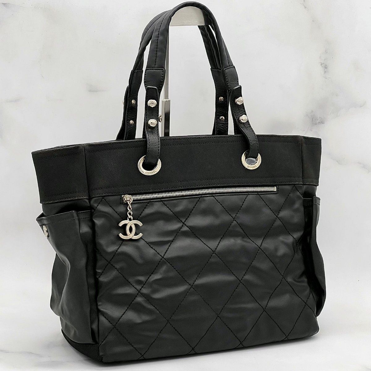 上質なブラックレザーに、シャネルらしいマトラッセステッチを施した存在感ある一品!