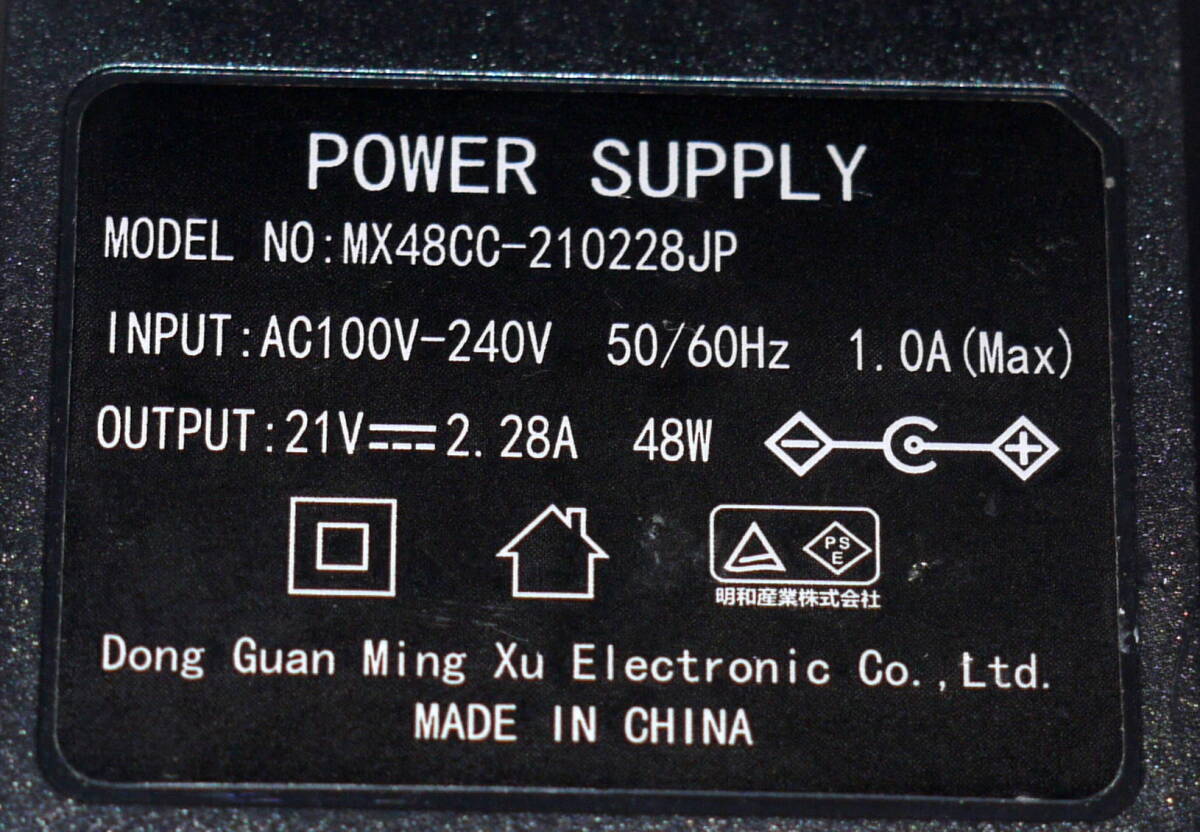 FUDONI プロジェクト用 ACアダプター MX48CC-210228JP DC21V 2.28A 動作確認済 收藏