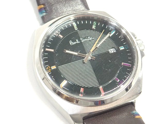 | 10221[i]稼働品 Paul Smith ポールスミス 1116-T020640 メンズ クォーツ 腕時計 レザーベルト デイト ブラック文字盤 クローズドアイズ | ||