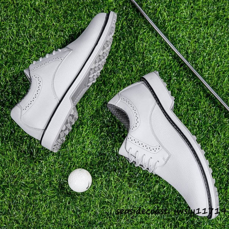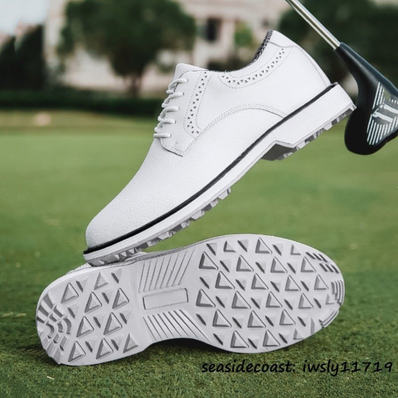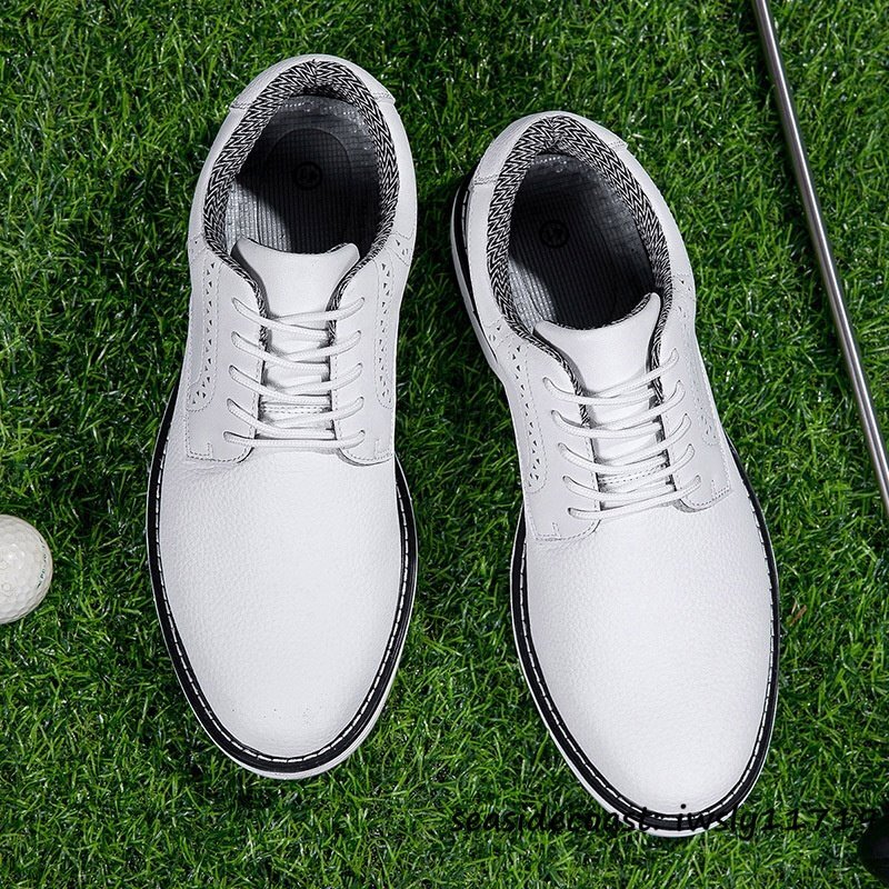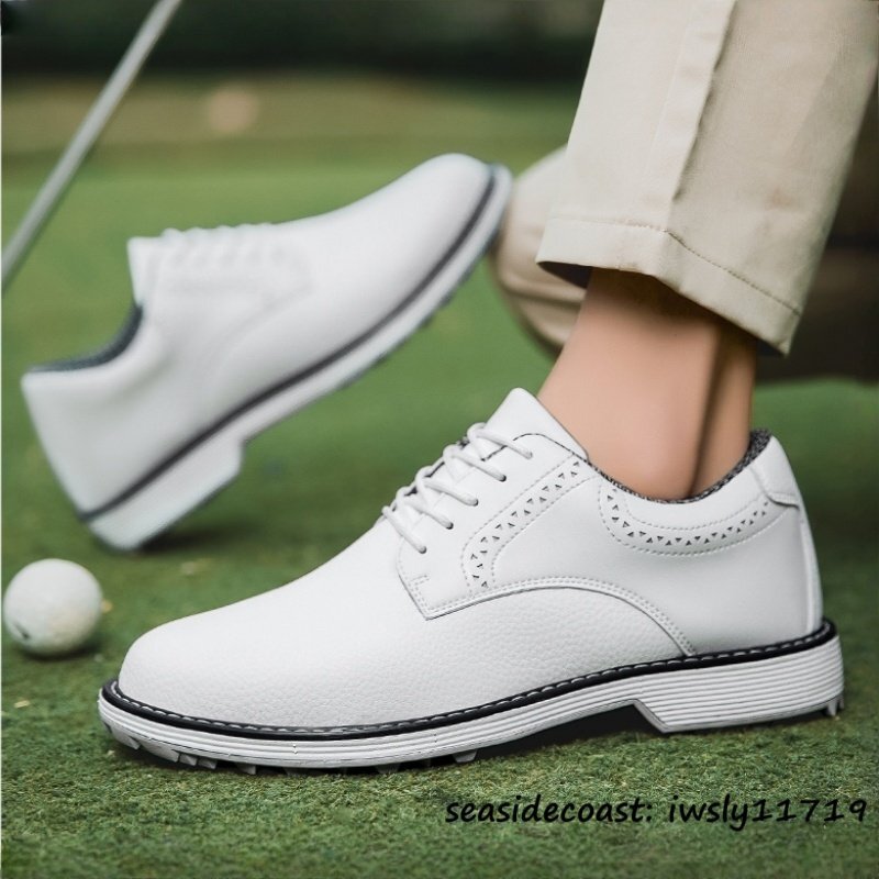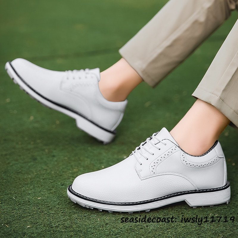 超希少 メンズ ゴルフシューズ イギリス風 通気性 高級品 スニーカー スパイクレスシューズ 超軽量 フィット感 防滑防水 ホワイト 25.5cm 收藏