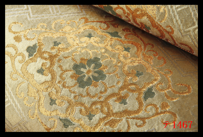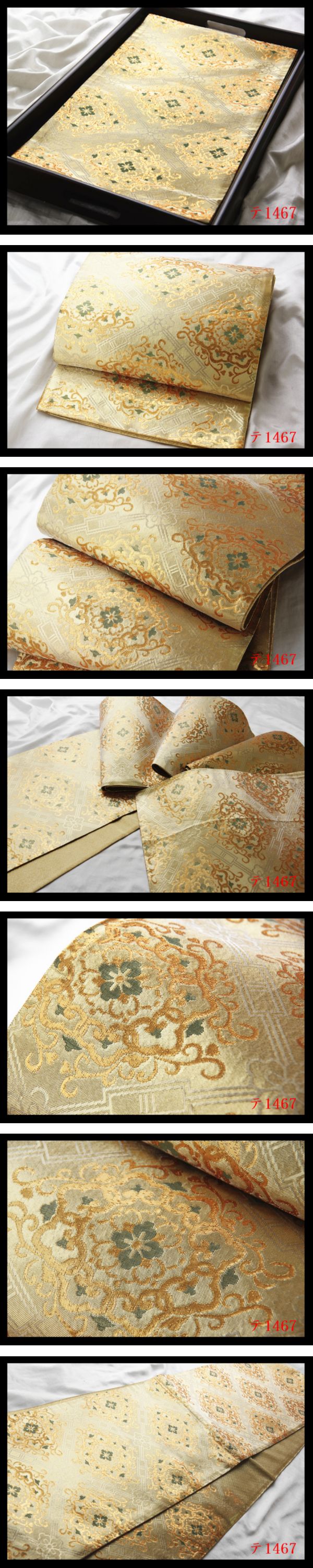 蔵【テ1467】厳選逸品 振袖可 菱取宝相華紋 金色地 気品豊かに 正絹純金糸六通高級美術袋帯 ◇検◇簪着物名古屋帯和装小物帯締め 收藏