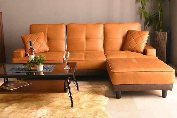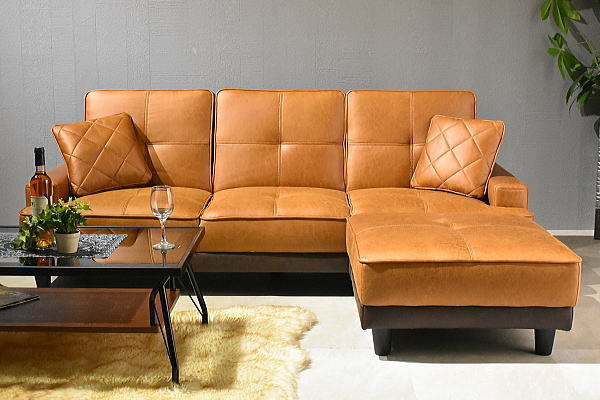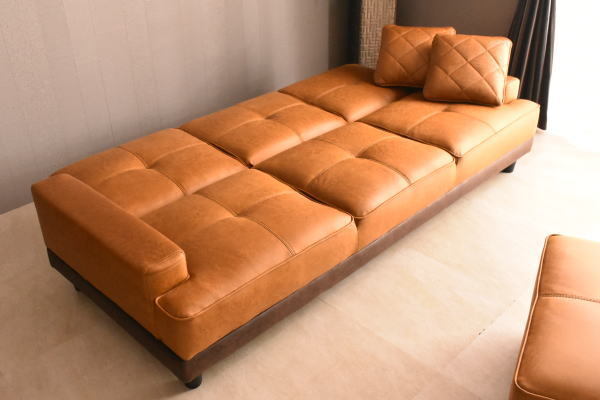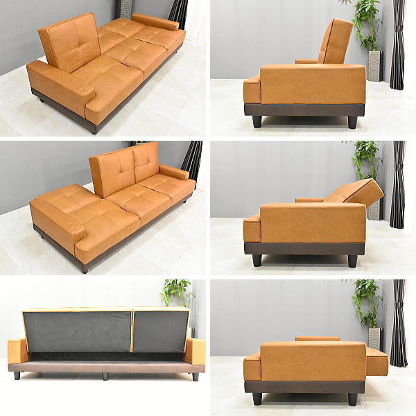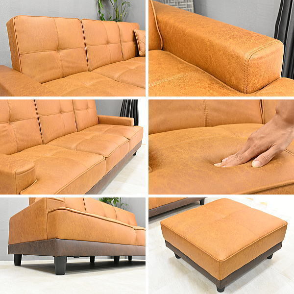 1円~ 地域限定送料無料 新品 レザーファブリック張りリクライニング3Pソファーベッド スツール付き3人用カウチソファ おしゃれ:ST32-6E71 收藏