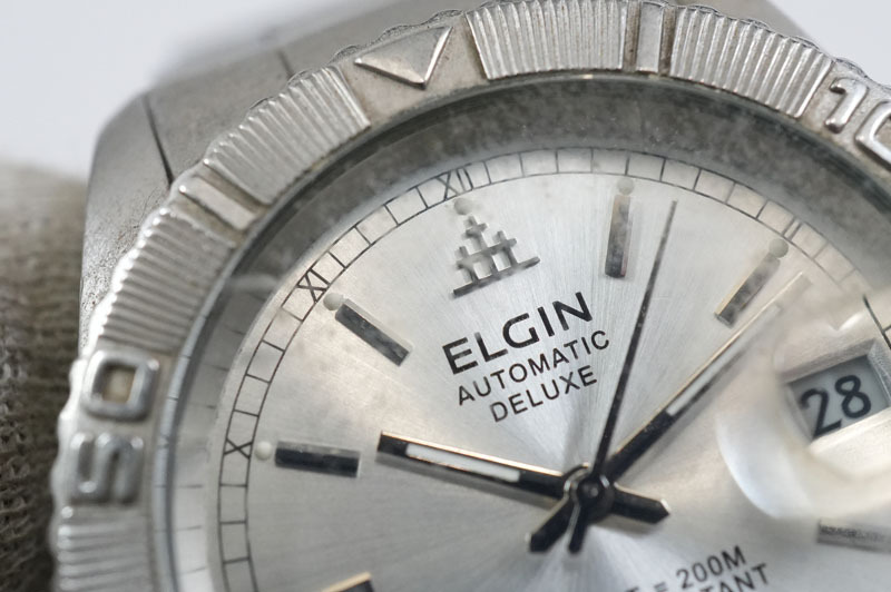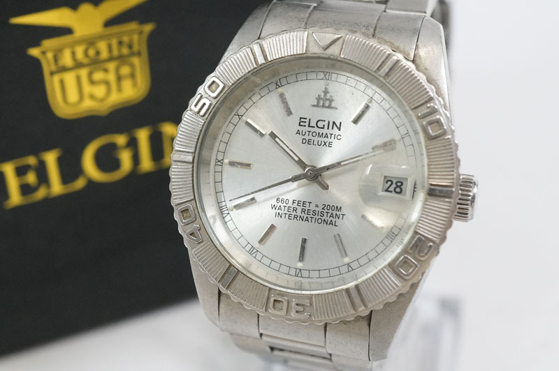 1円~【K615】実働 ELGIN/エルジン DELUXE/デラックス FK-1135-D 自動巻き デイト メンズ 腕時計 ケース付