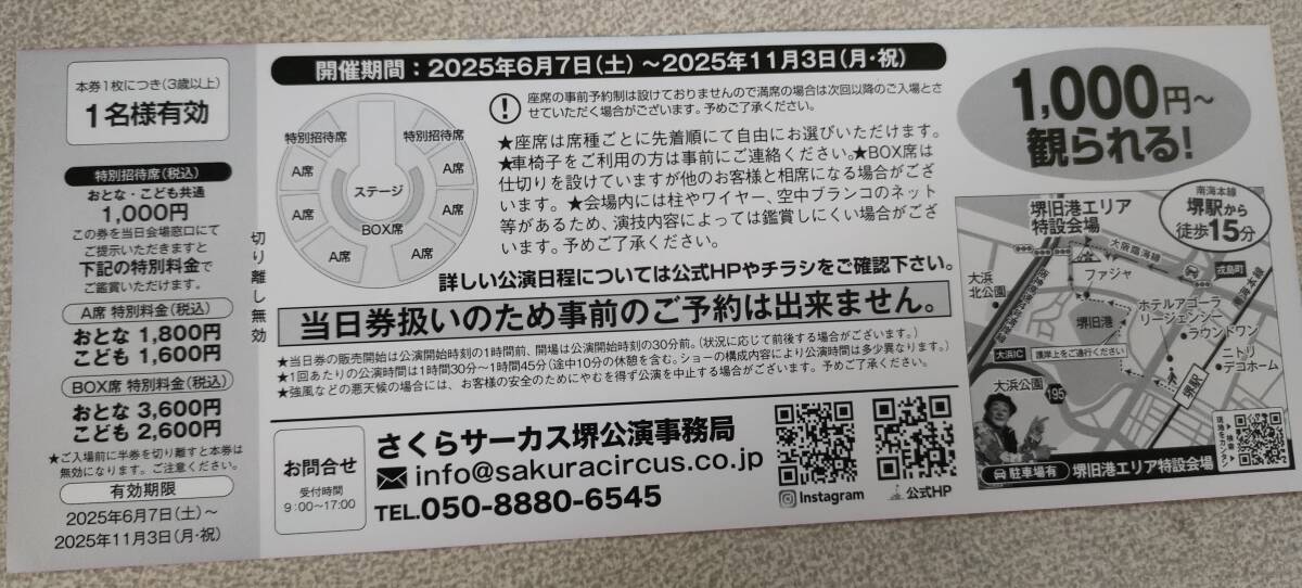 5枚セット さくらサーカス 堺公演 特別招待席券 2025年11月3日まで 特別招待席券 收藏