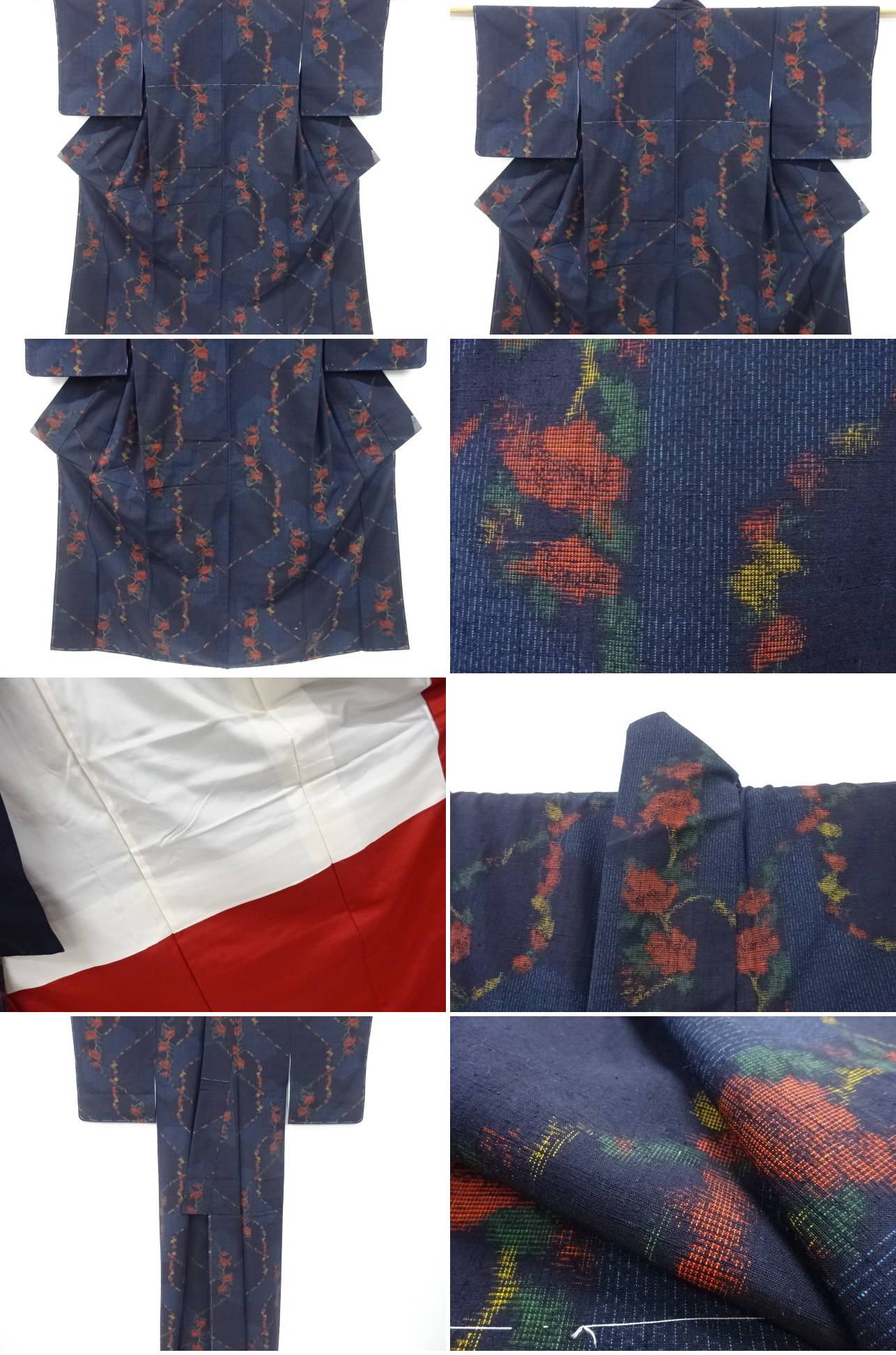 | お着物の状態をできる限りお伝えできるよう努力しておりますが、当店で出品の商品は全てアンティークになります。 一品一品丁寧に検品の上、出品させて頂いておりますが、稀に小さな見落としや、アンティーク特有の経年に伴う汚れや傷のある場合もございますので、アンティーク・中古品にご理解ある方のみのご入札をお願い致します。 寸法に関しましては、一品一品手作業での採寸であり、性質上生地の伸縮性もございますので、若干の誤差はご了承ください。 ごく稀にですが、樟脳やアンティーク特有の匂いがある場合がございます。 匂いに関しては、商品コメントには記載しておりませんので、ご理解の上ご入札下さい。 はぎれ商品につきましては、解き商品が多くなっております。 生地端に縫い糸の残りが多く残った状態での出品となります。 ご理解の上でのご入札と、ご自宅でのお手入れをお願い申し上げます。 | |