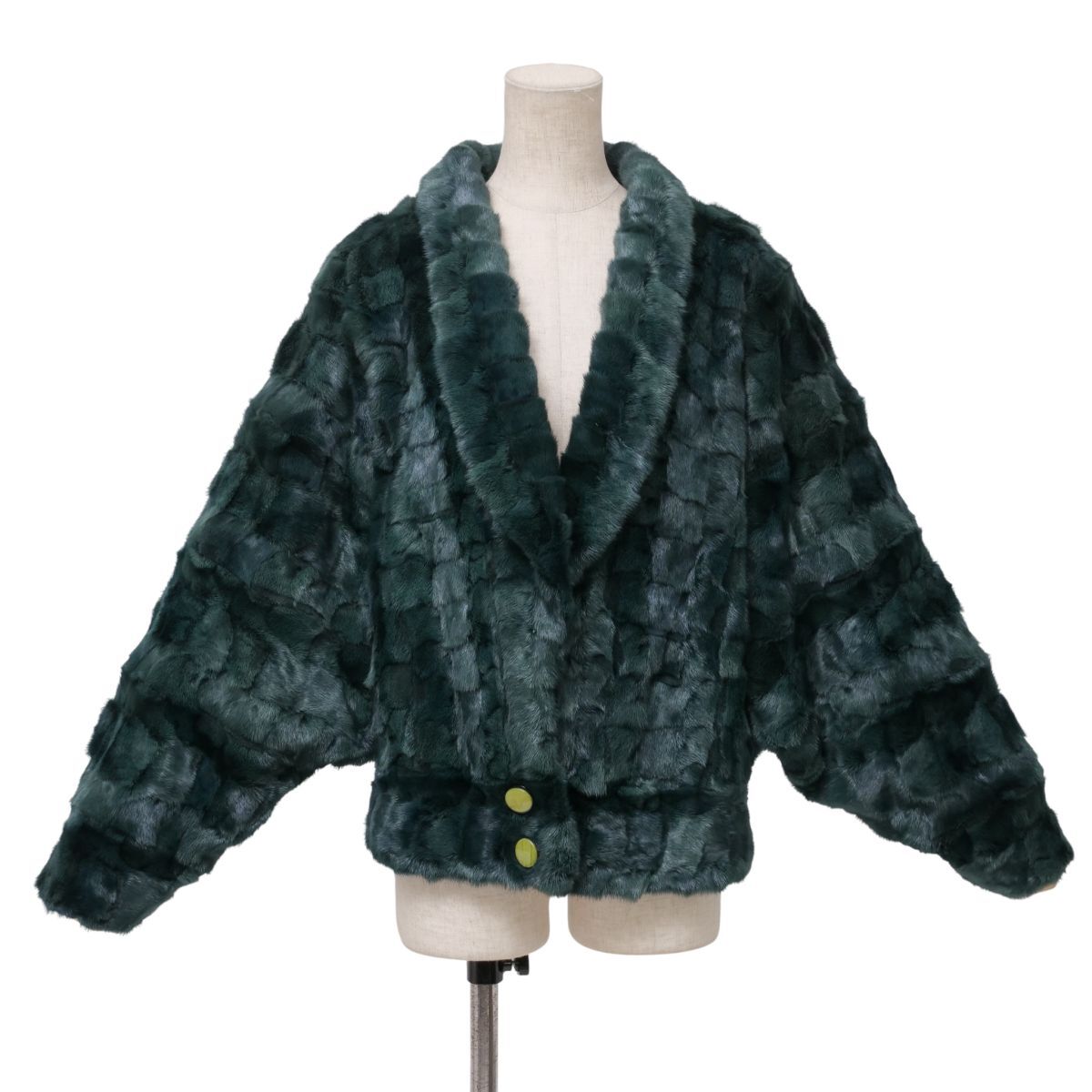 GS3147◎サガミンク ロイヤル SAGAMINK ROYAL 金サガ ドルマンスリーブ ハーフ丈 ファーコート サイズL 毛皮コート グリーン系 ジャケット 收藏