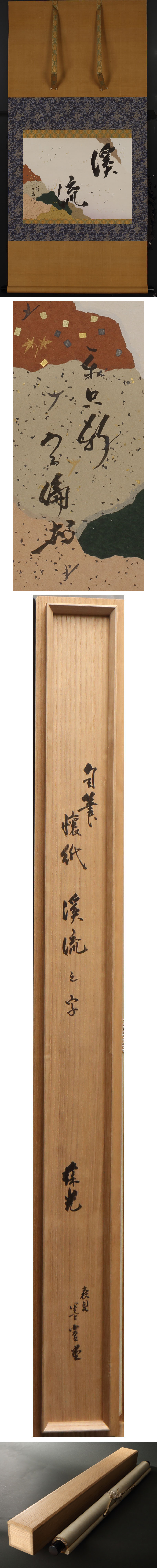 【深和】松尾葆光斎 石山懐紙二字横物「渓流」佐藤墨豊堂表具 共箱 真筆 保証品(松尾流 茶人 宗匠 名古屋 書幅 遺墨 茶掛 茶道具) 收藏