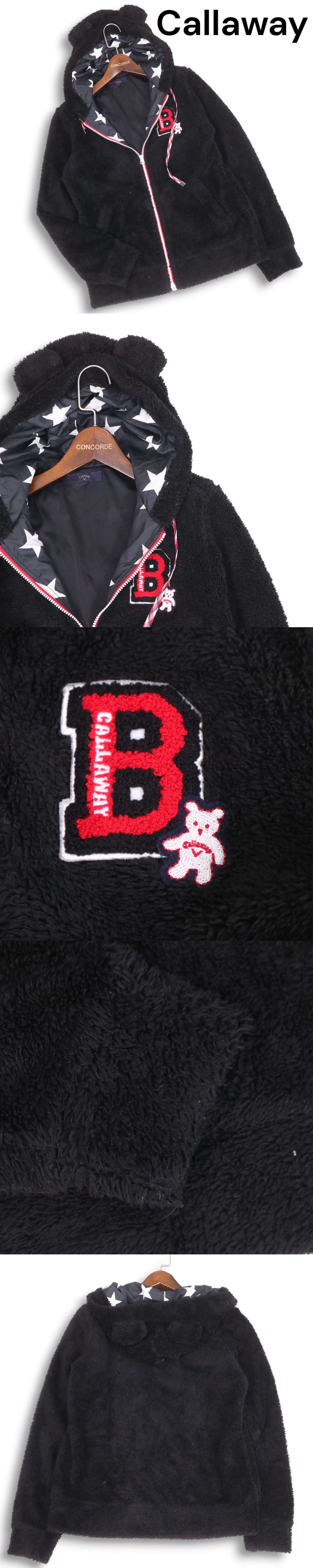 Callaway キャロウェイ ゴルフ 秋冬 ベア くま耳付き♪ ボア ジップアップ パーカー Sz.L レディース 黒 收藏