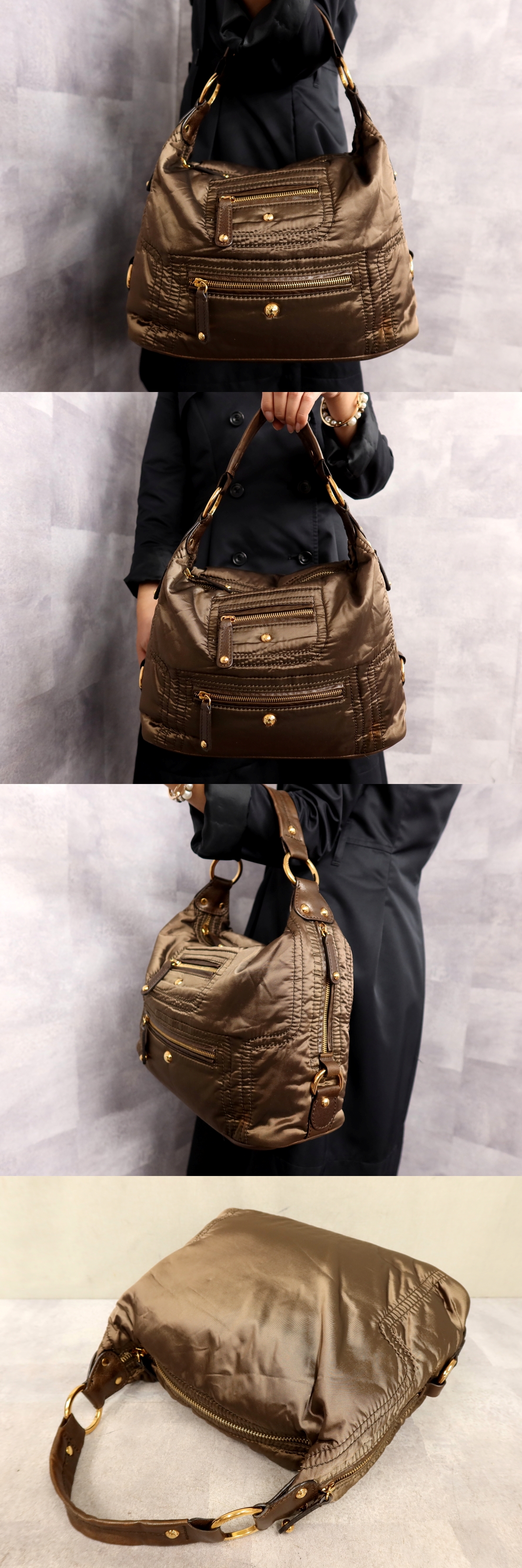 ●超美品●TODS トッズ●ナイロン カーフ レザー 本革●ハンド バッグ●メタリックブラウン●ゴールド金具●腕掛け●収納 かばん●Js62182 收藏