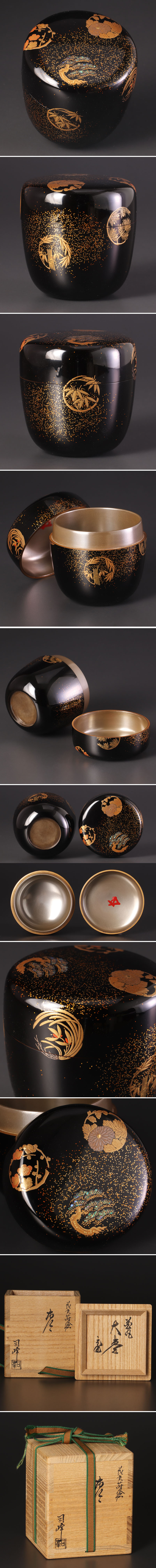 | 【古美味】新井司峰『鵬雲斎書付』花丸蒔絵大棗 茶道具 保証品 |