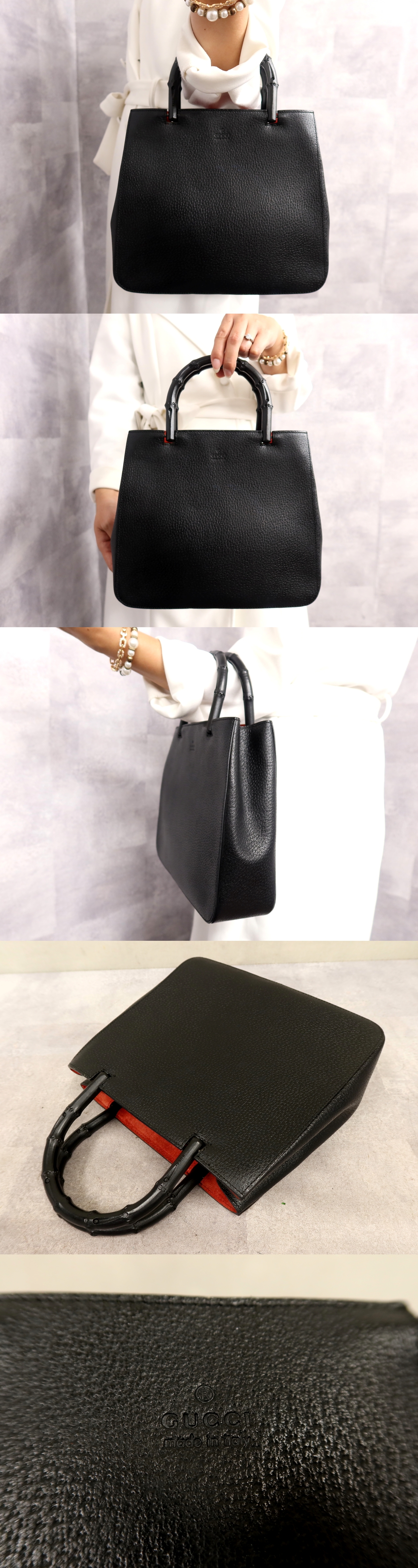 ●超美品●GUCCI グッチ●バンブー●ロゴ型押し●カーフ レザー 本革●ハンド バッグ●黒●イタリア製●腕掛け●収納 かばん●Js62334 收藏